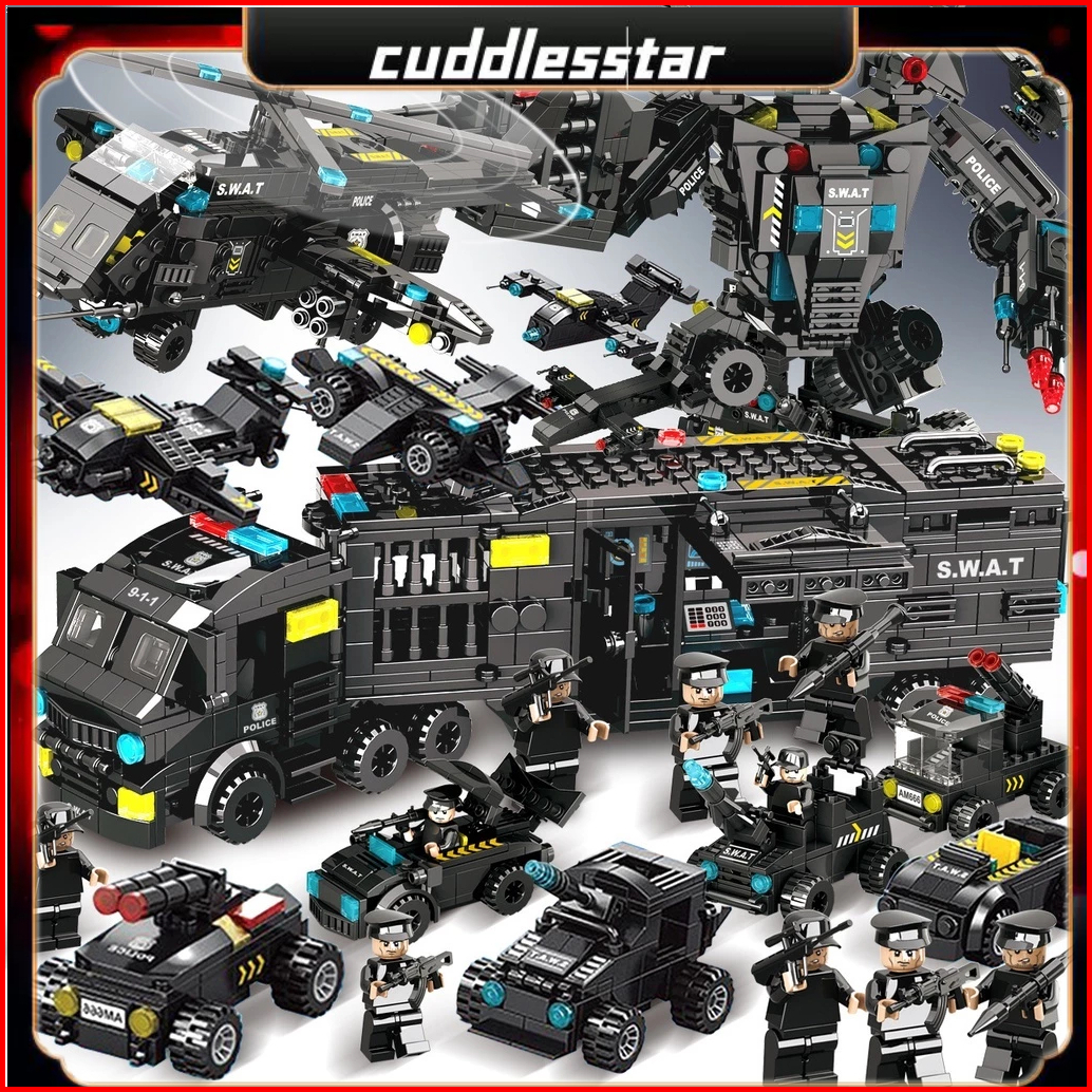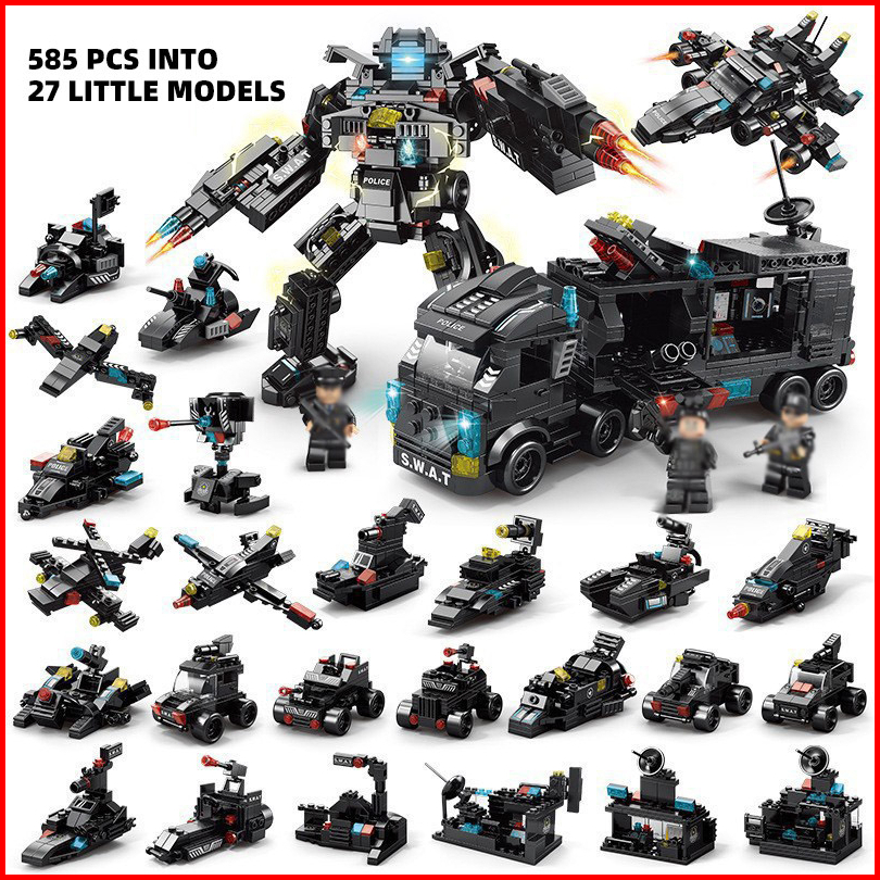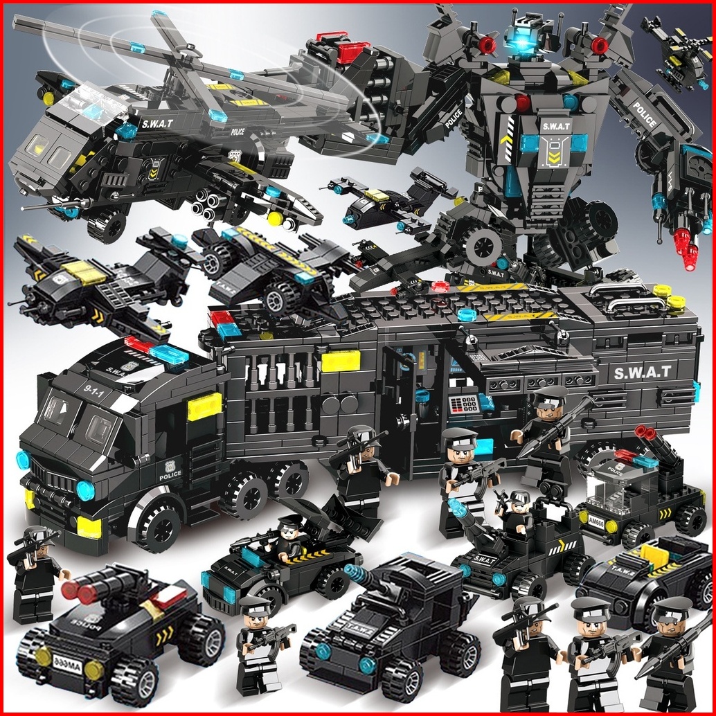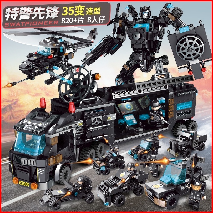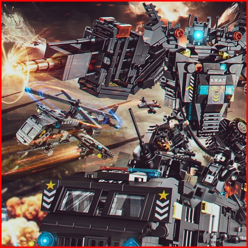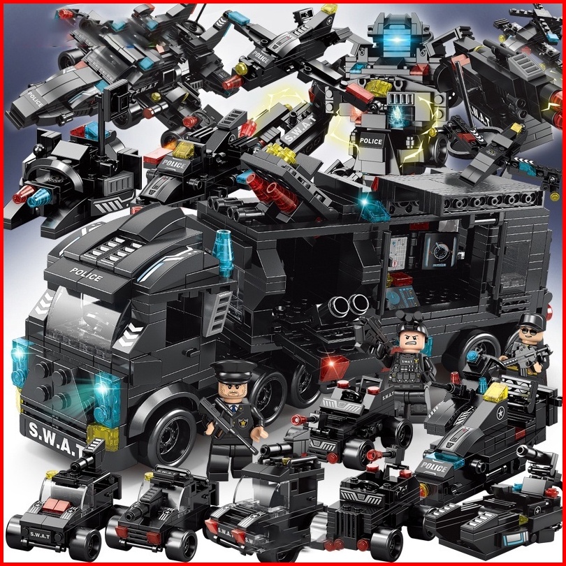 8 In 3 Robot Mainan Brick Blok City Police 820pcs Vehicle Hawk Swat Mainan Hadiah Ulang Tahun Mainan Anak Laki Laki