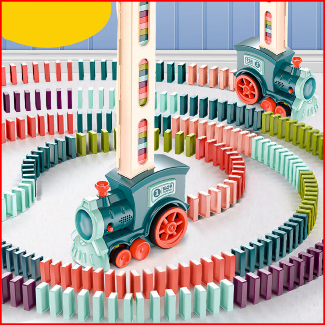 Domino Train Toy Mainan Electric Train Mainan Edukasi Anak Anti Patah Automatic Licensing Electric Train Puzzle Toy
