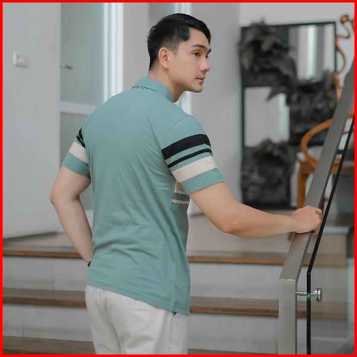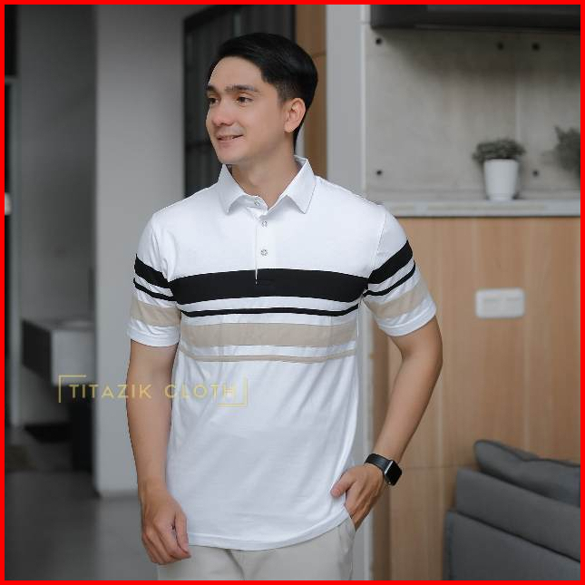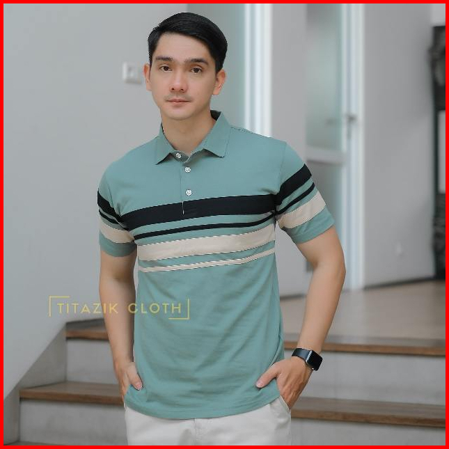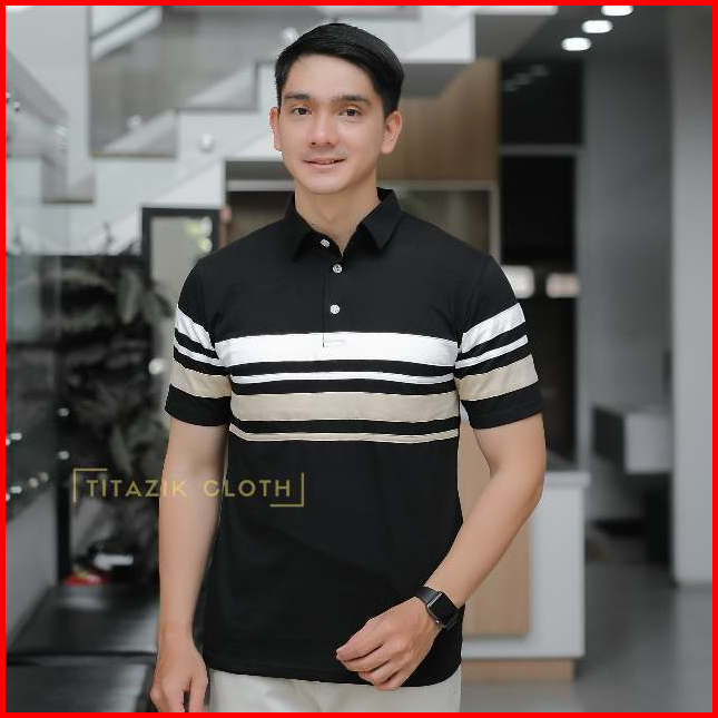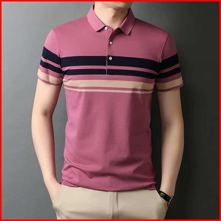 New Produk Kaos Polo Pria Motif Kombinasi Kerah Kemeja Lengan Pendek