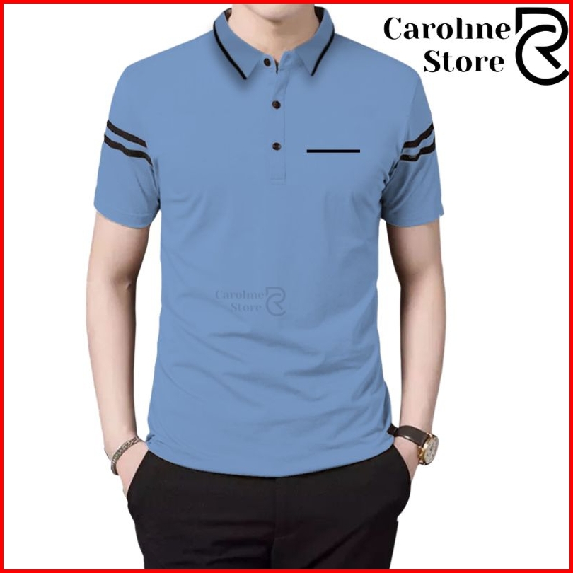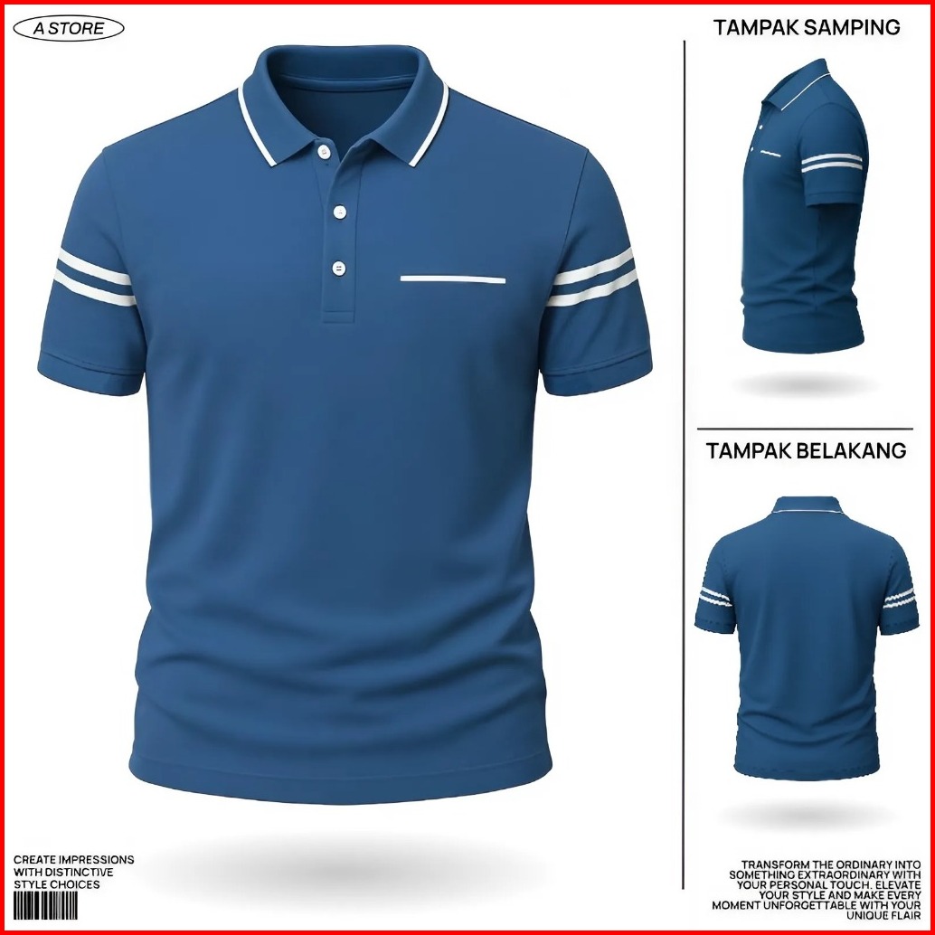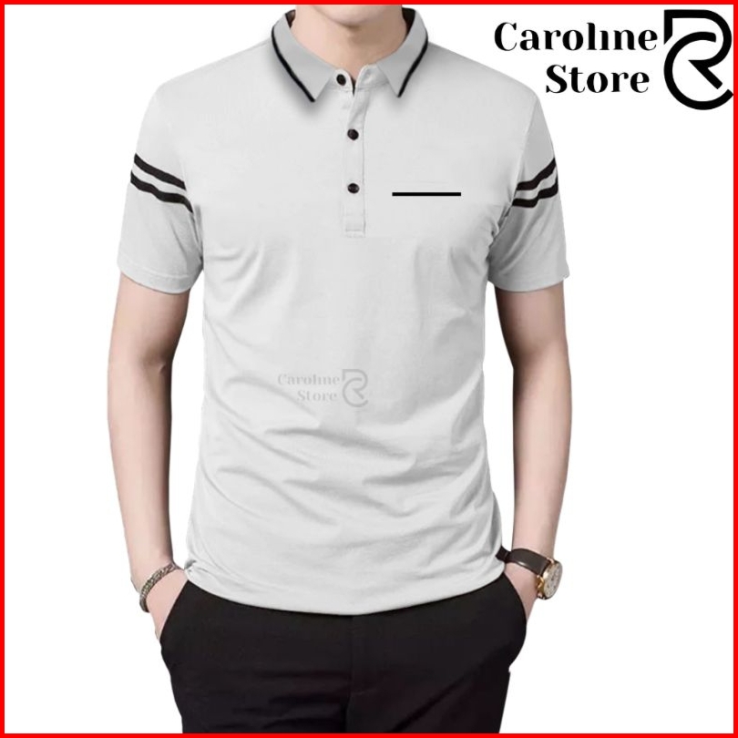 Terlaris Kaos Kerah Pria Daun Saku Garis Pendek - Polo Shirt Pria Santai Bahan Katun Premium Distro