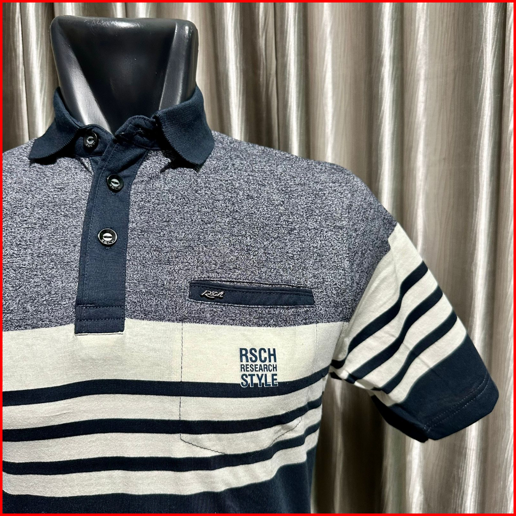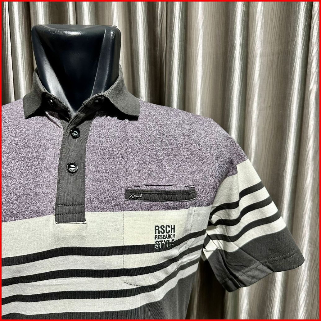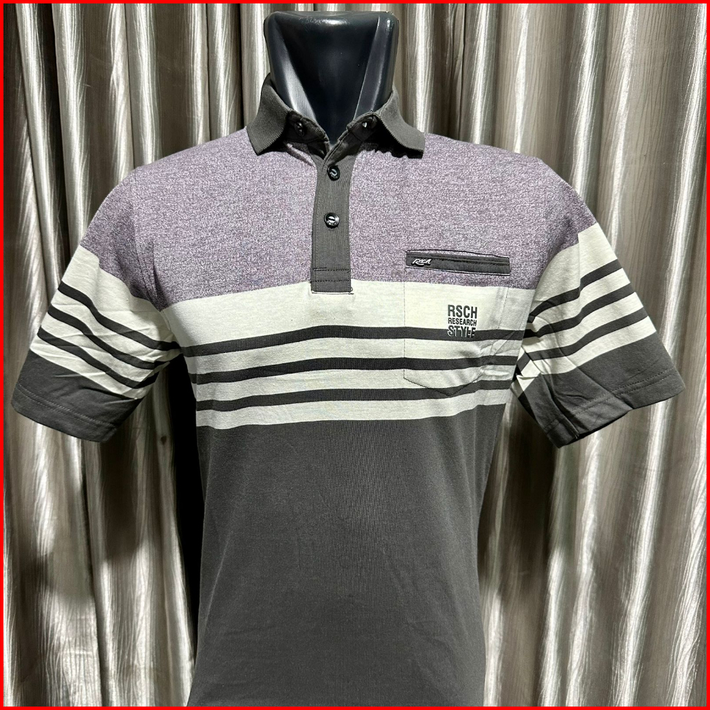 Kaos Fashion Pria Kerah Polo Rsch.style Motif Garis Mix Misty Lengan Pendek Top Kasual Brand Model Terbaru Kualitas Terb