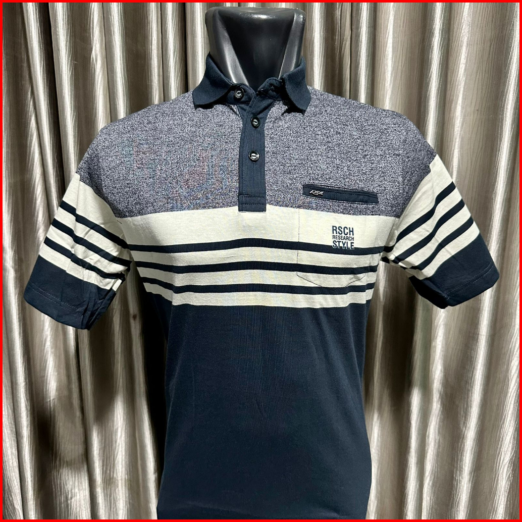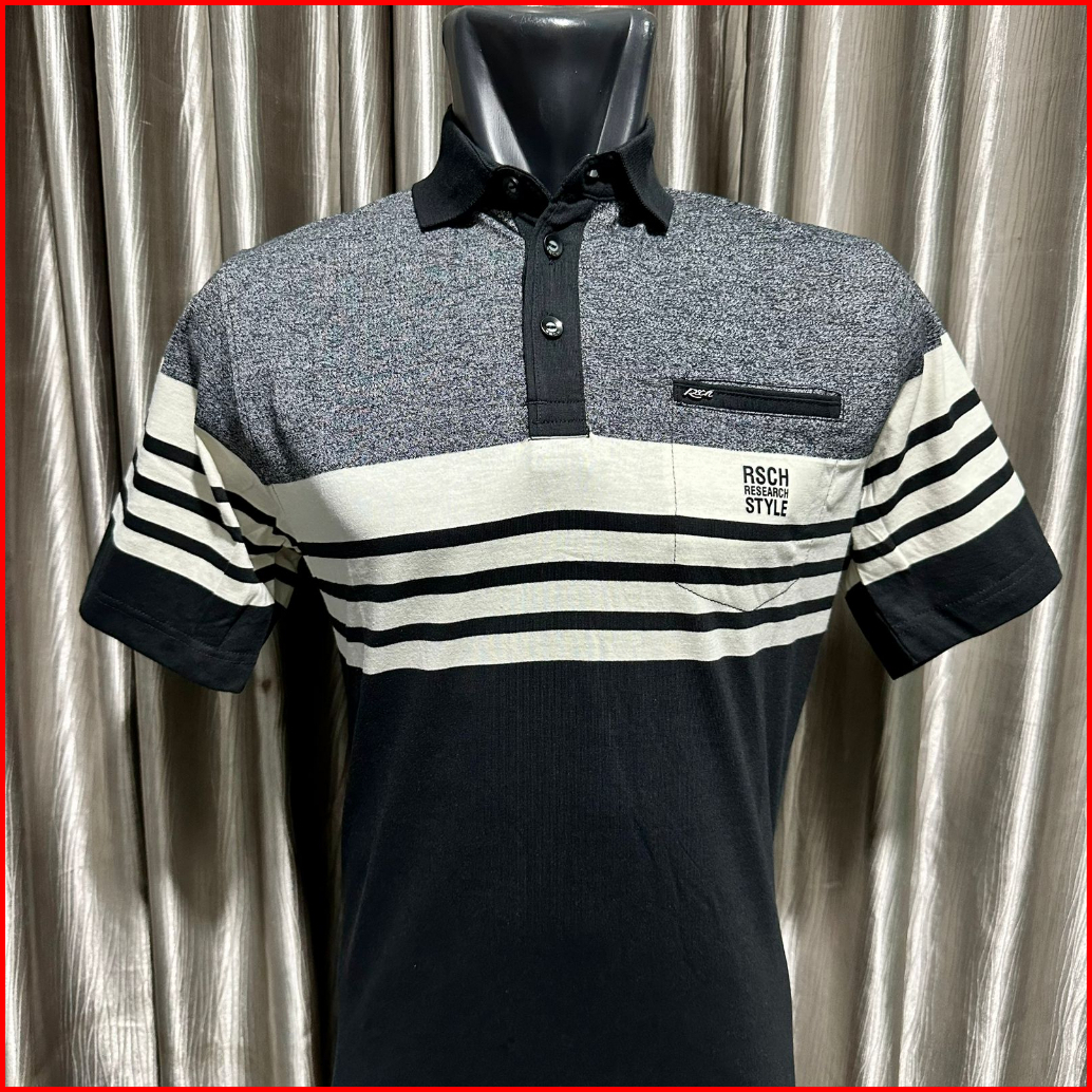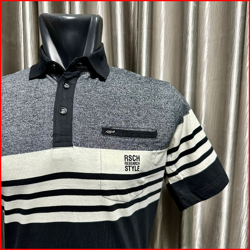 Kaos Fashion Pria Kerah Polo Rsch.style Motif Garis Mix Misty Lengan Pendek Top Kasual Brand Model Terbaru Kualitas Terb