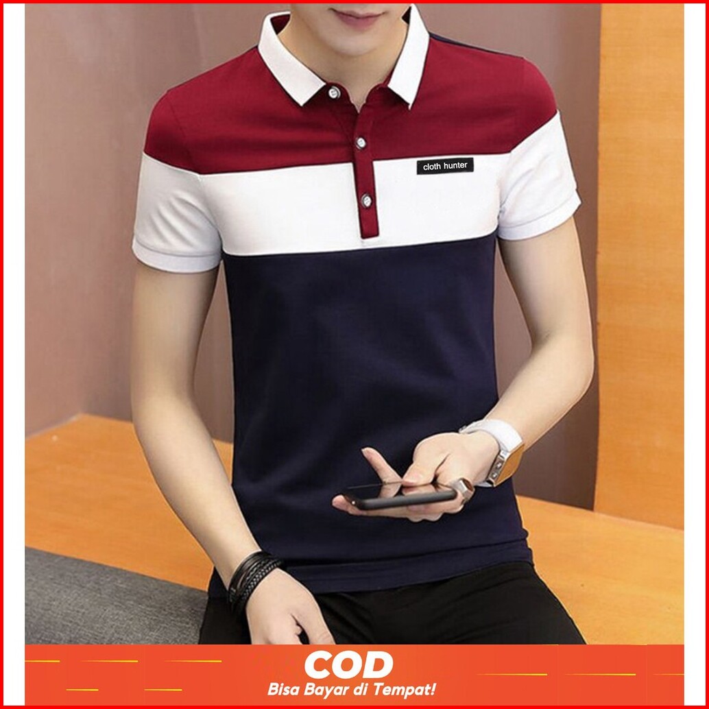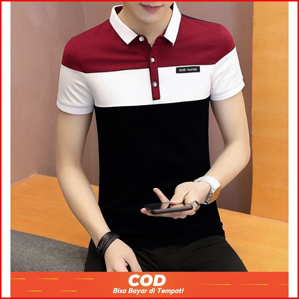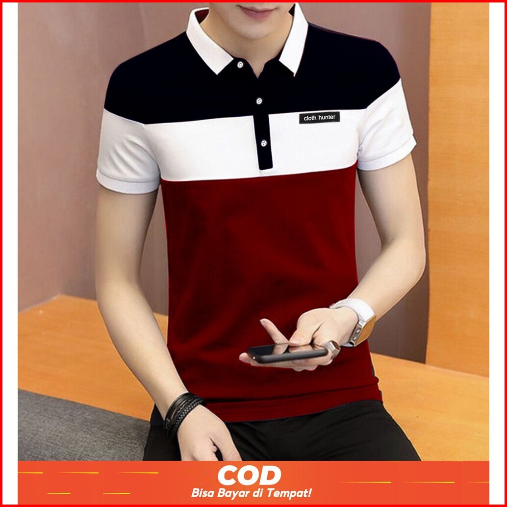 Kaos Polo Pria Kerah Kancing Lengan Pendek