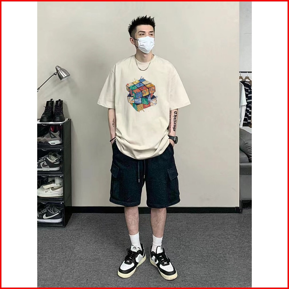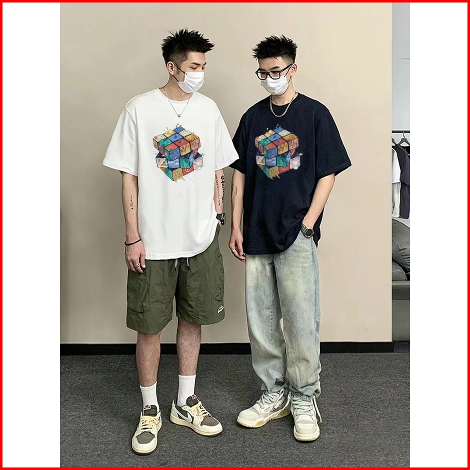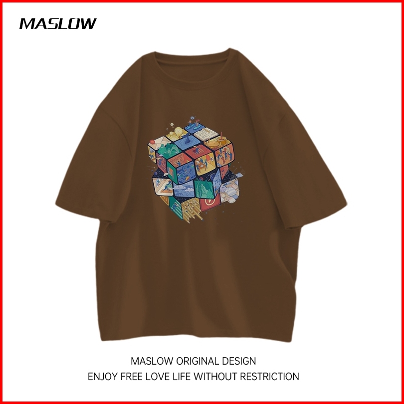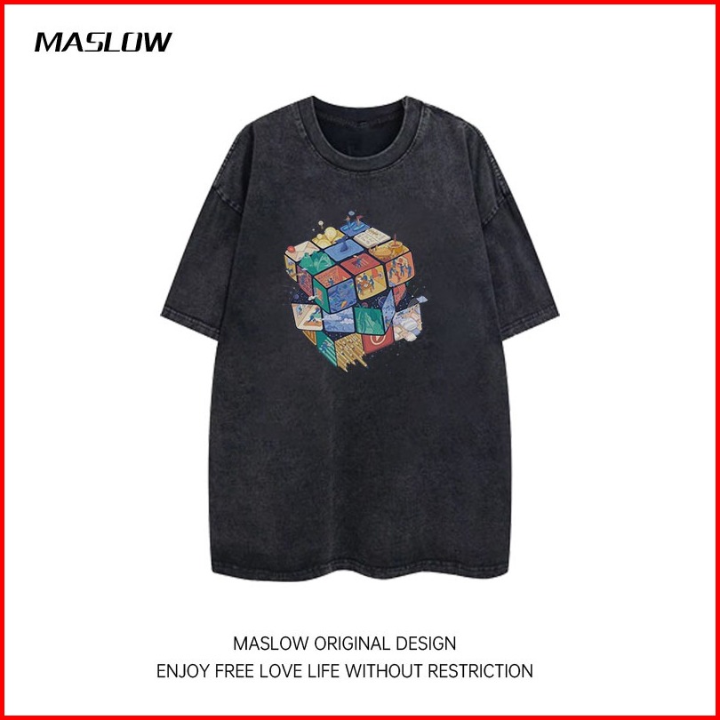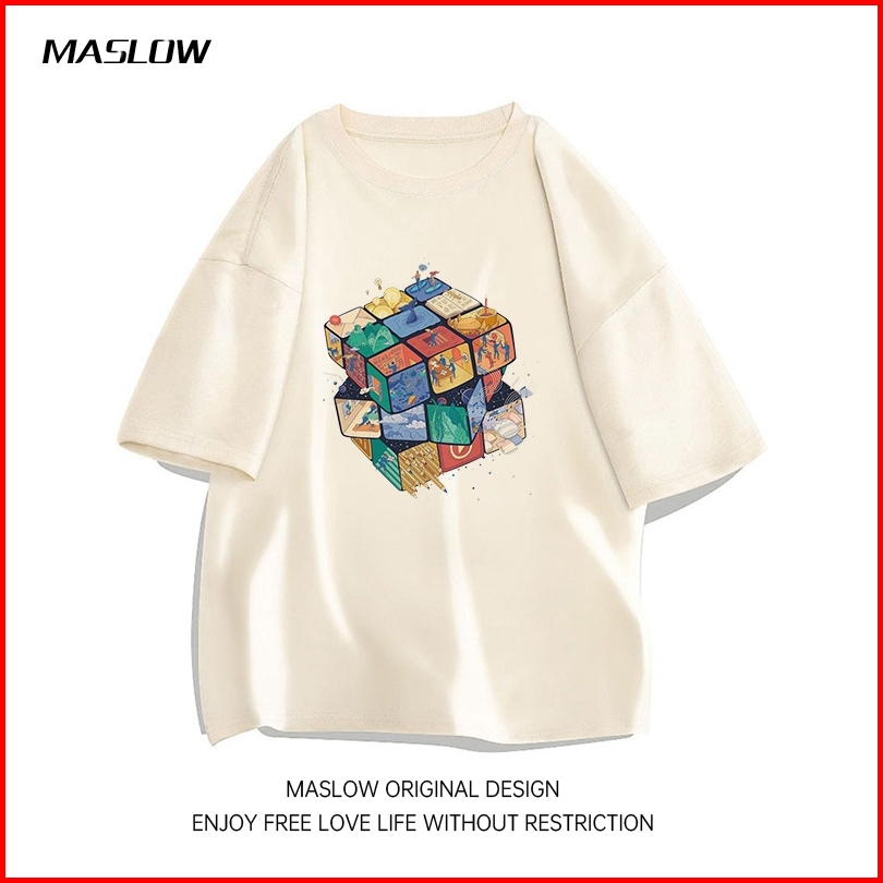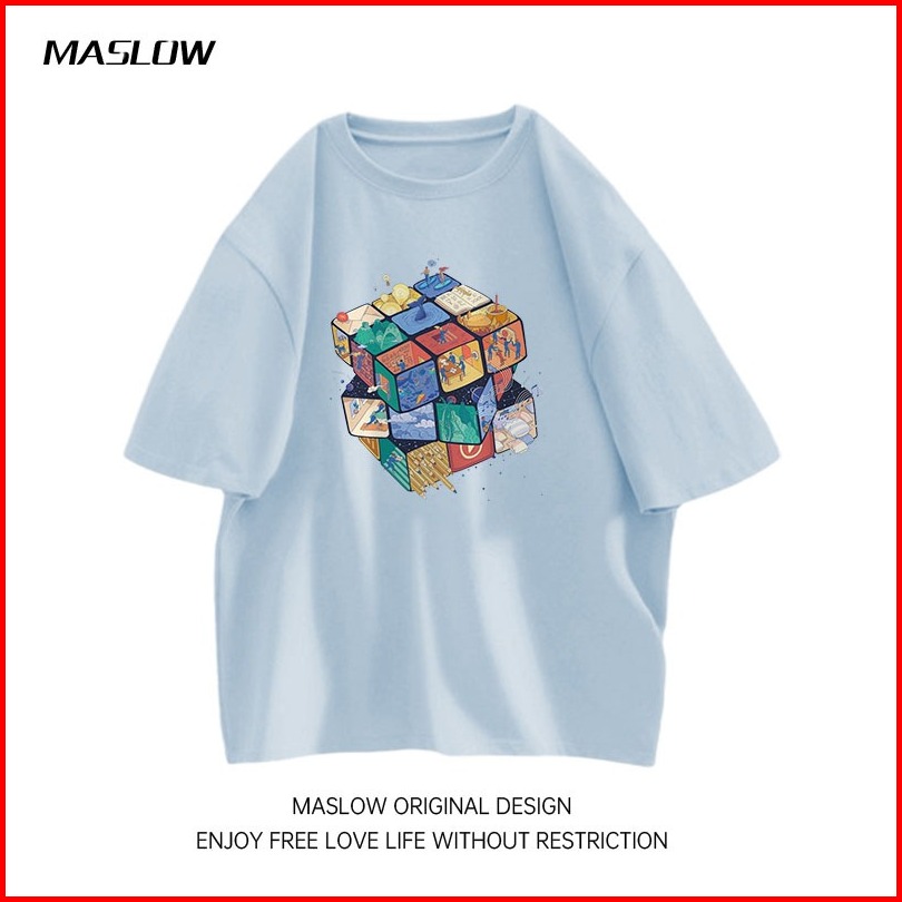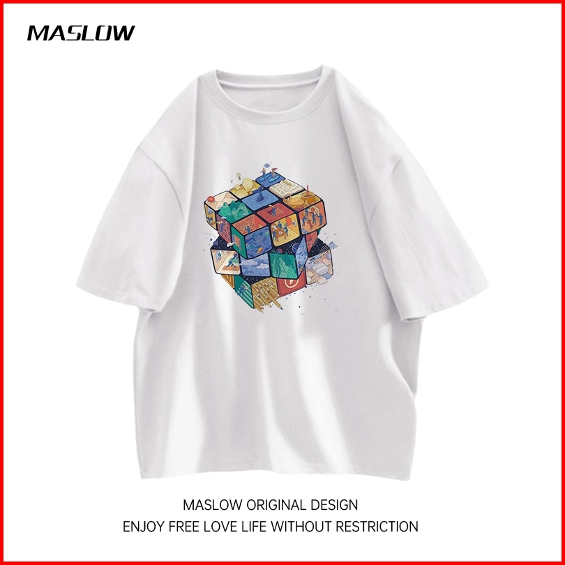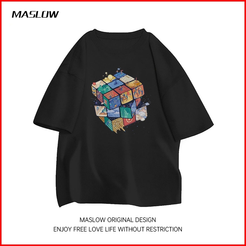 Maslow T Shirt Baju Pria Oversize Lengan Pendek Colored Rubik S Cube Fashion Pria Kaos T Shirt Pria 100 Cotton
