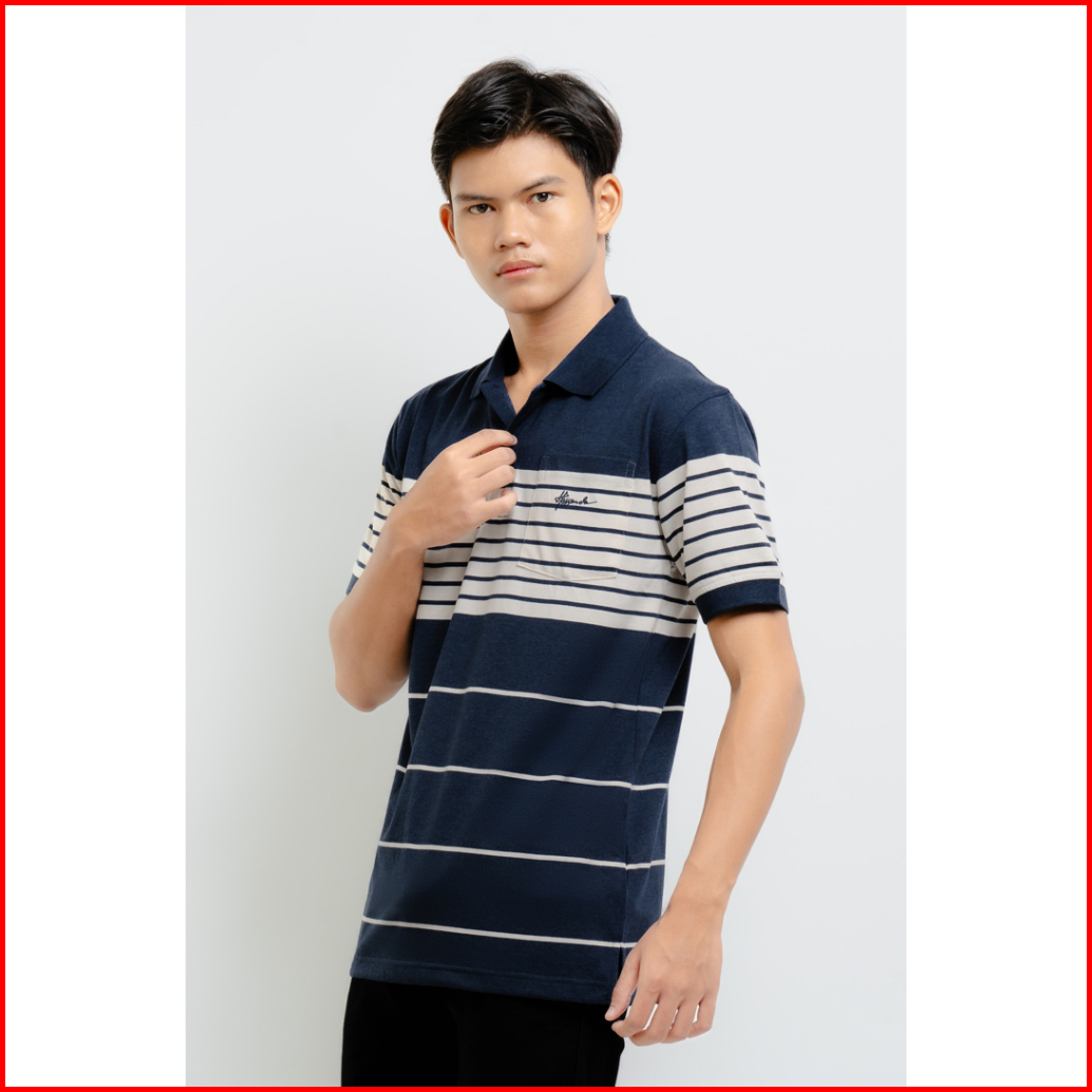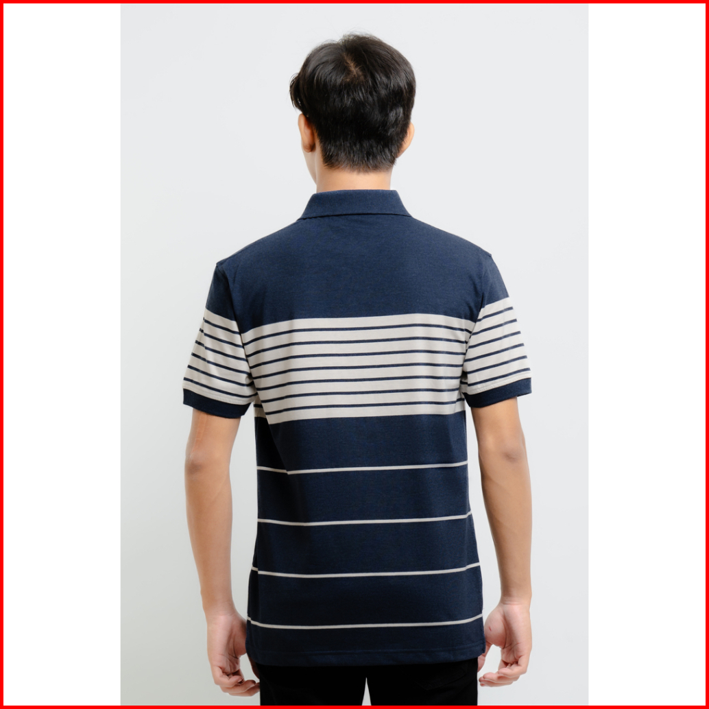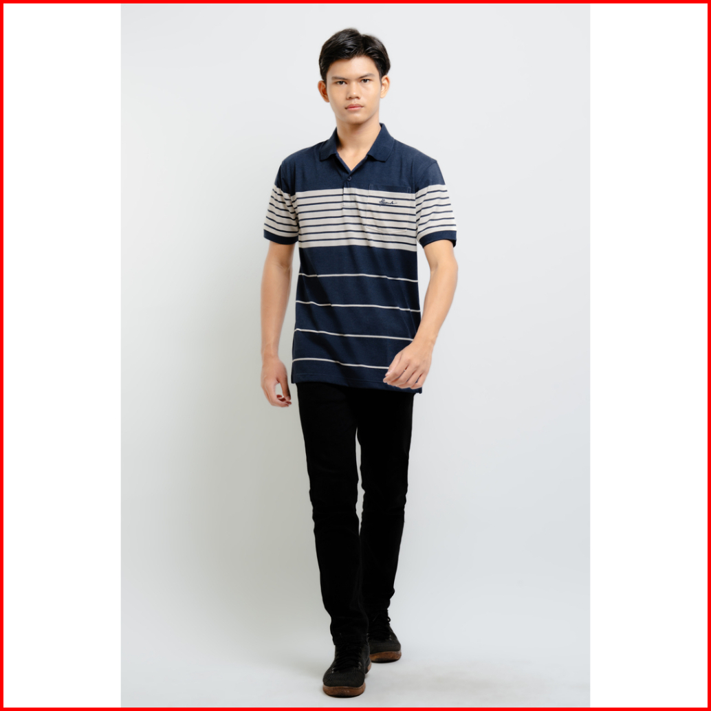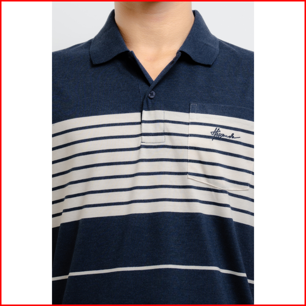 Hassenda Kaos Polo Pria Motif Salur Naresh Black