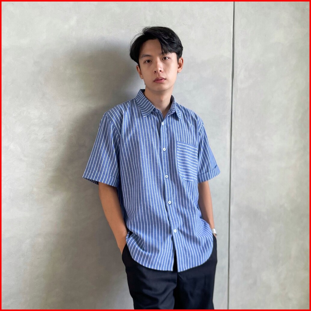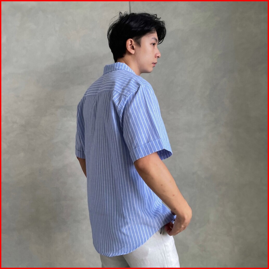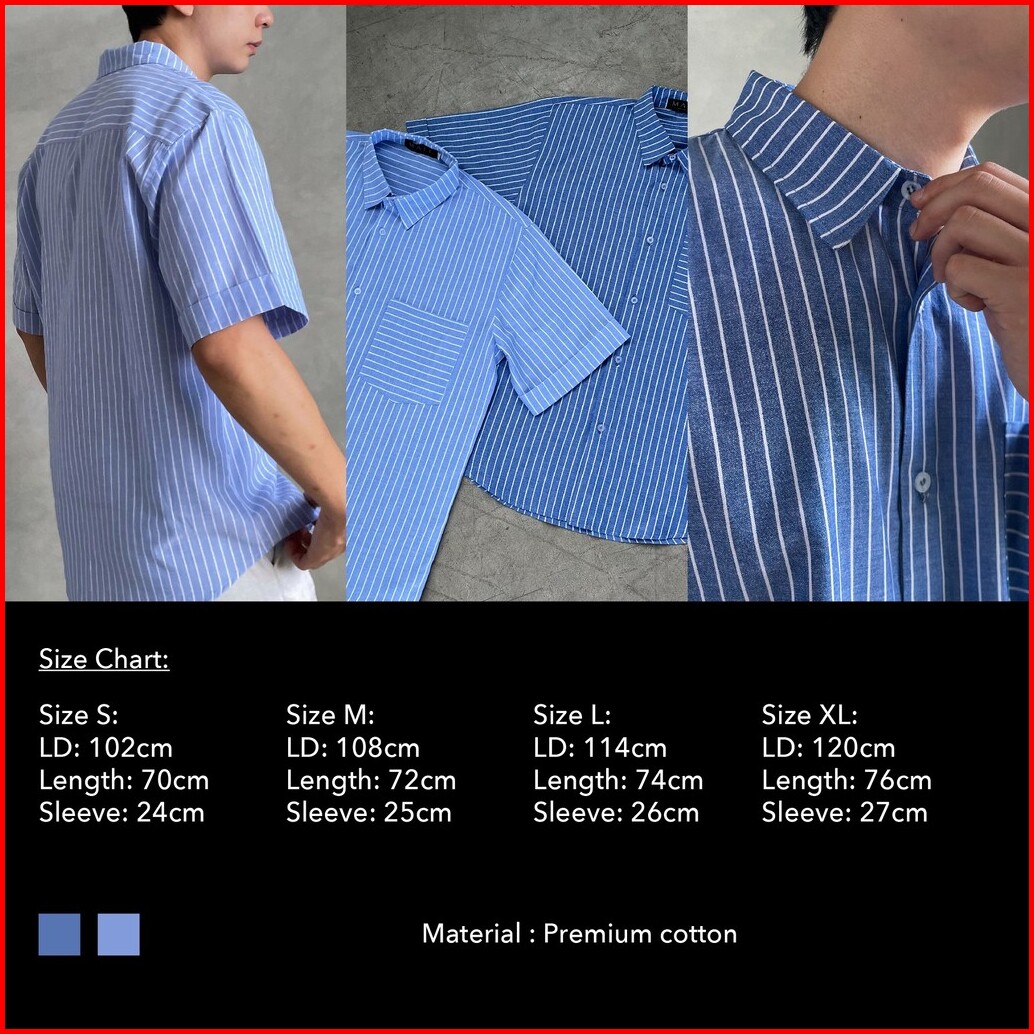 Male - Jaxon Stripe Shirt Kemeja Garis Tangan Pendek Pakaian Atasan Pria Kemeja Trendy