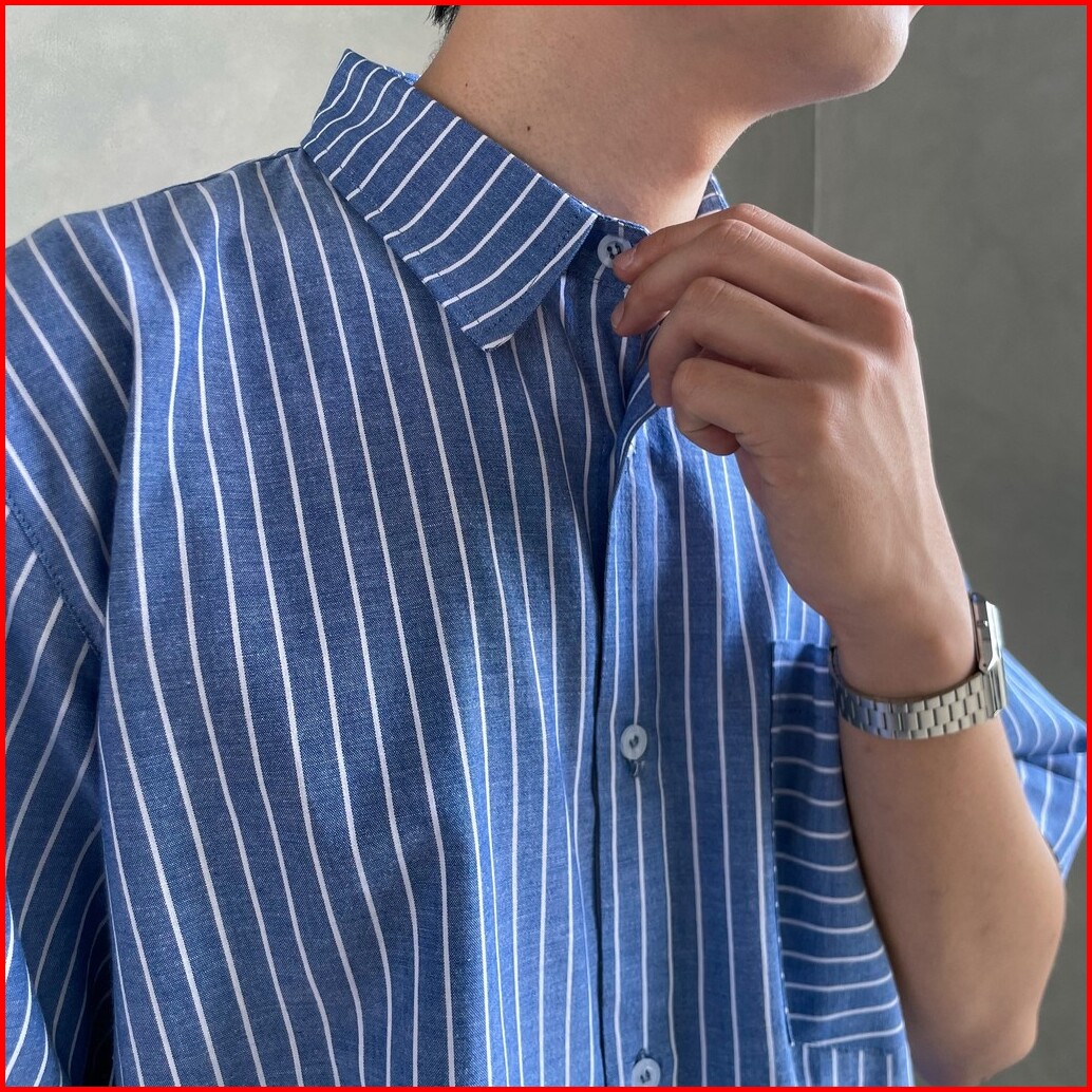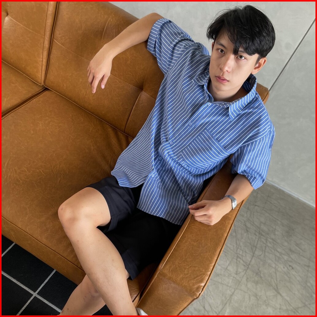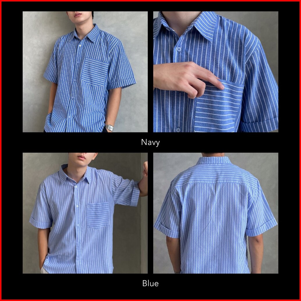 Male - Jaxon Stripe Shirt Kemeja Garis Tangan Pendek Pakaian Atasan Pria Kemeja Trendy