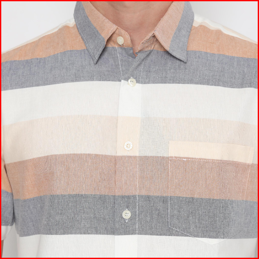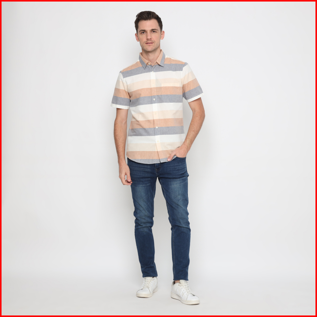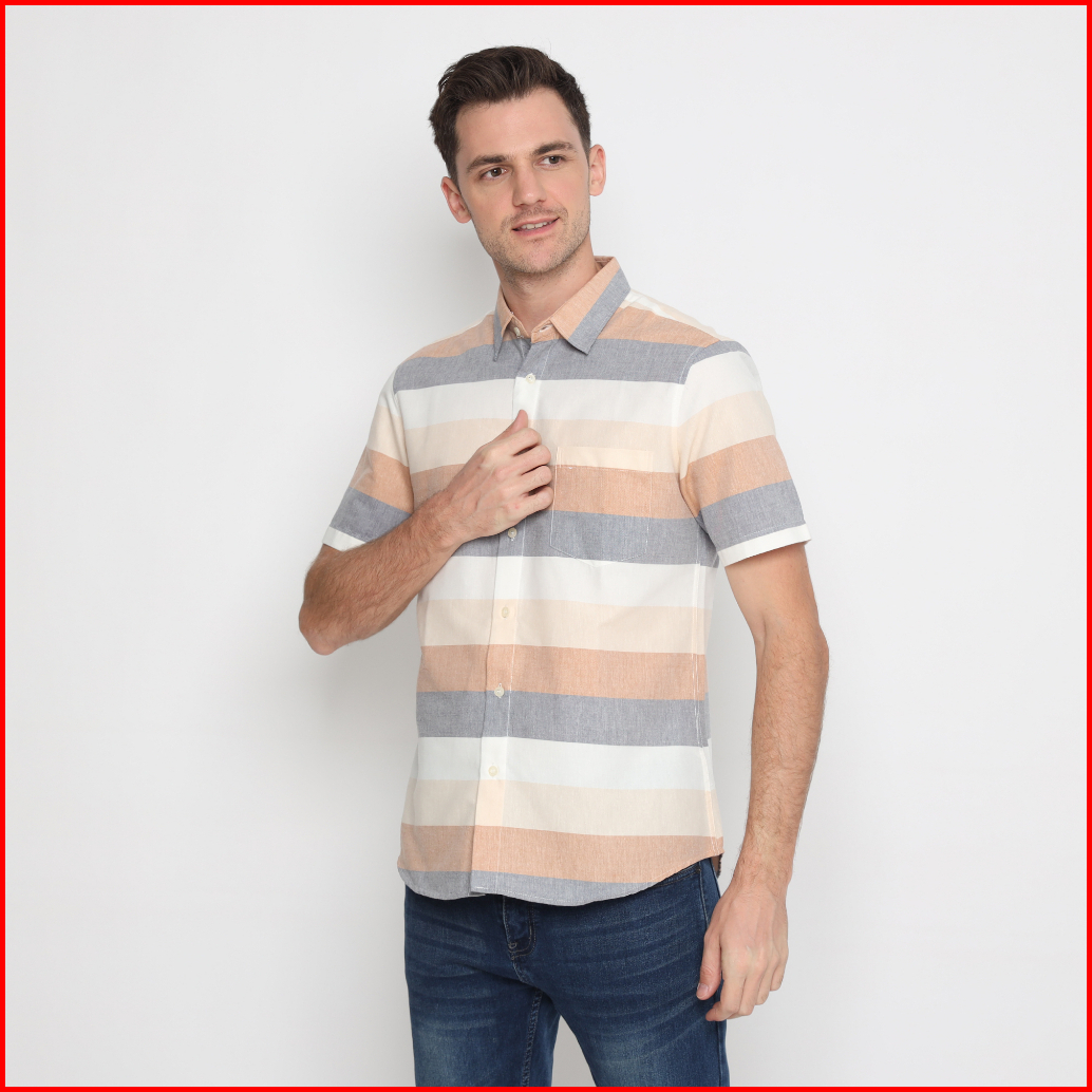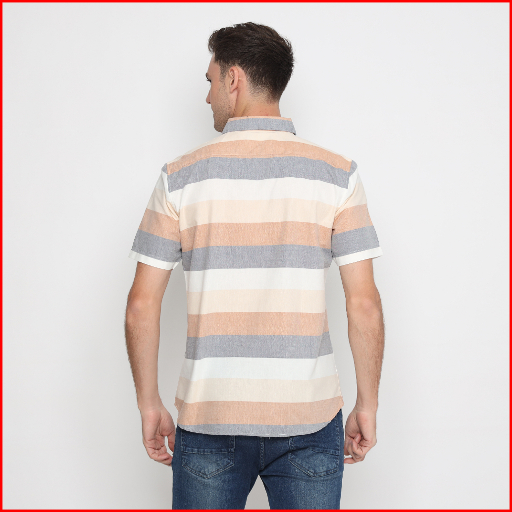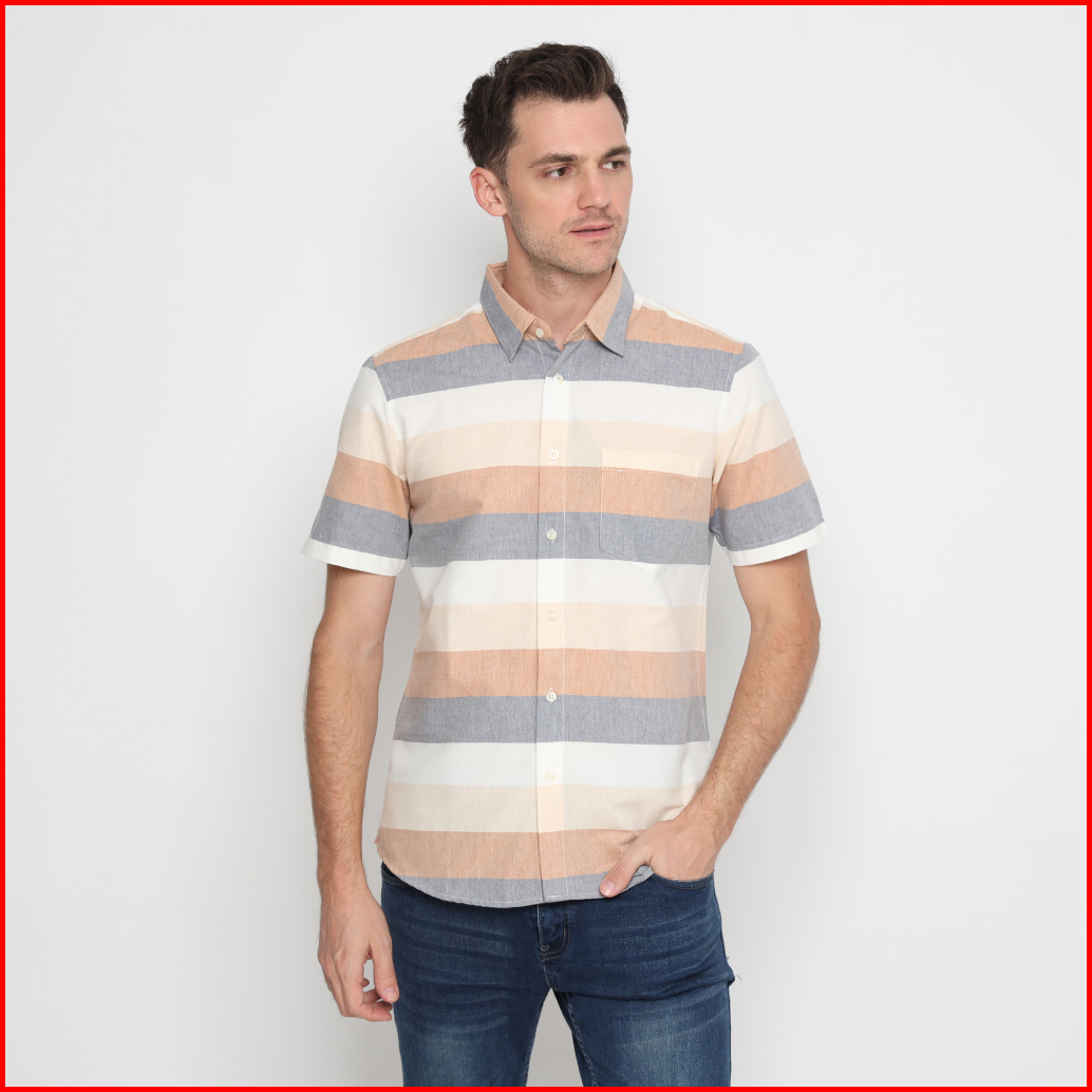 Platini Kemeja Salur Pria Lengan Pendek Katun Krem 73426