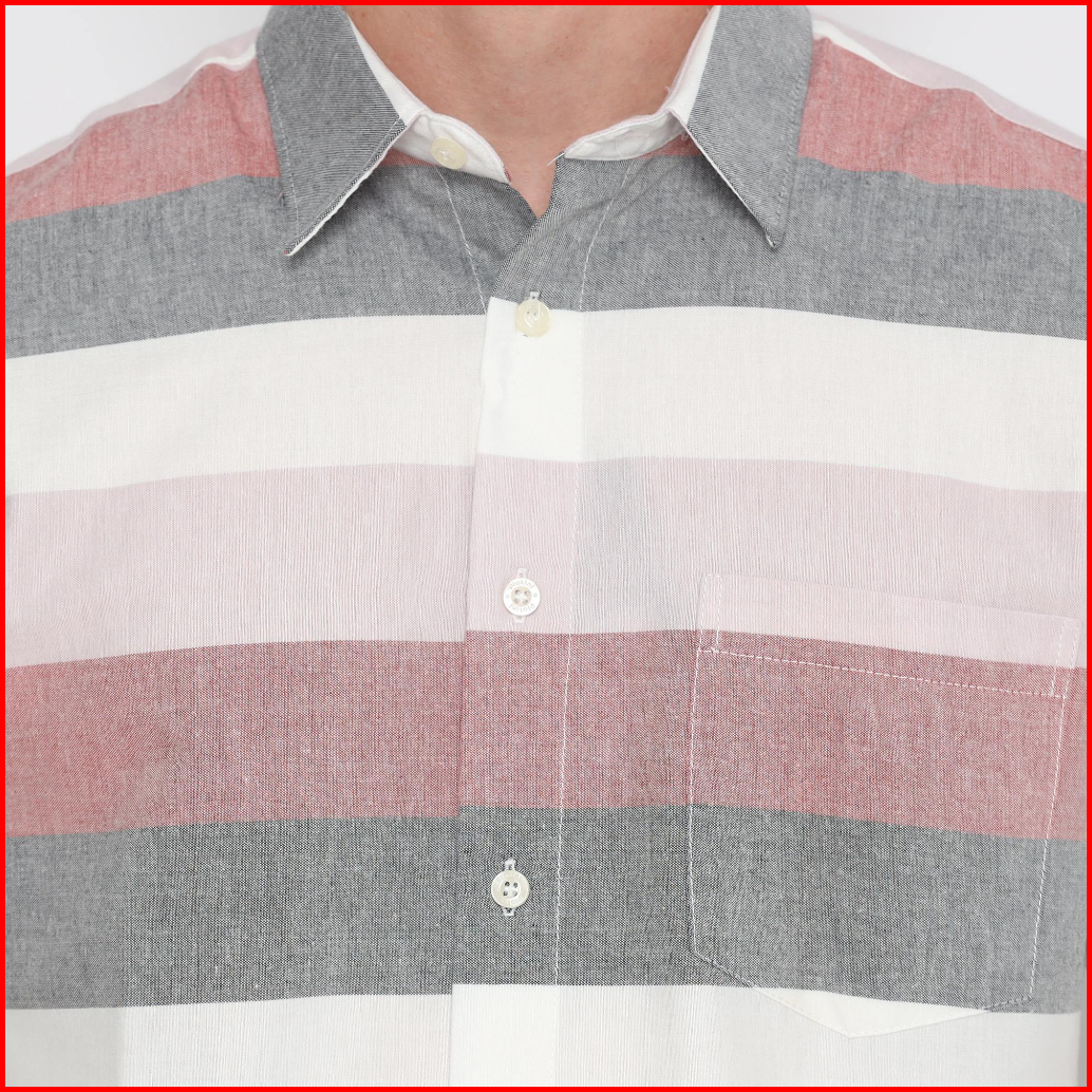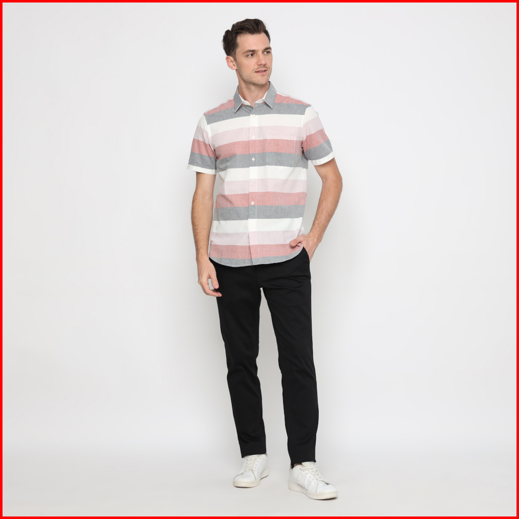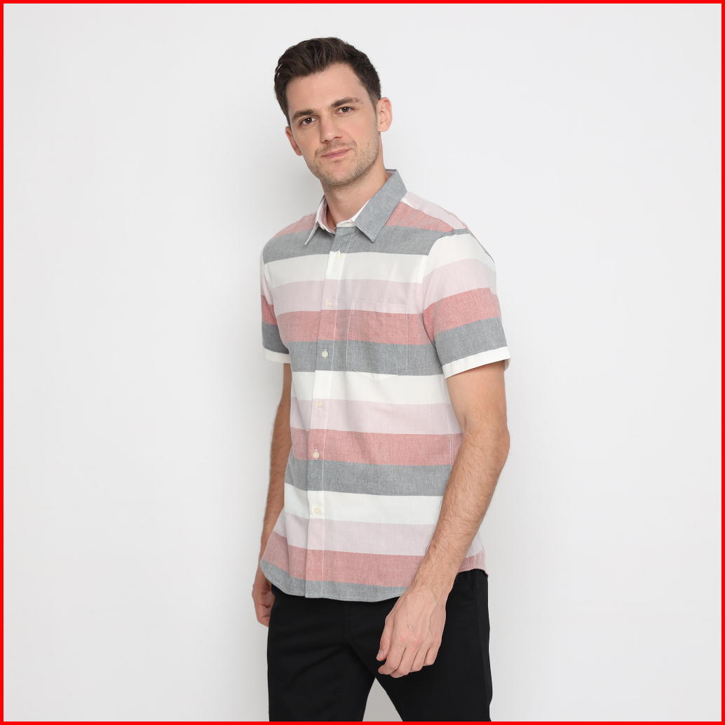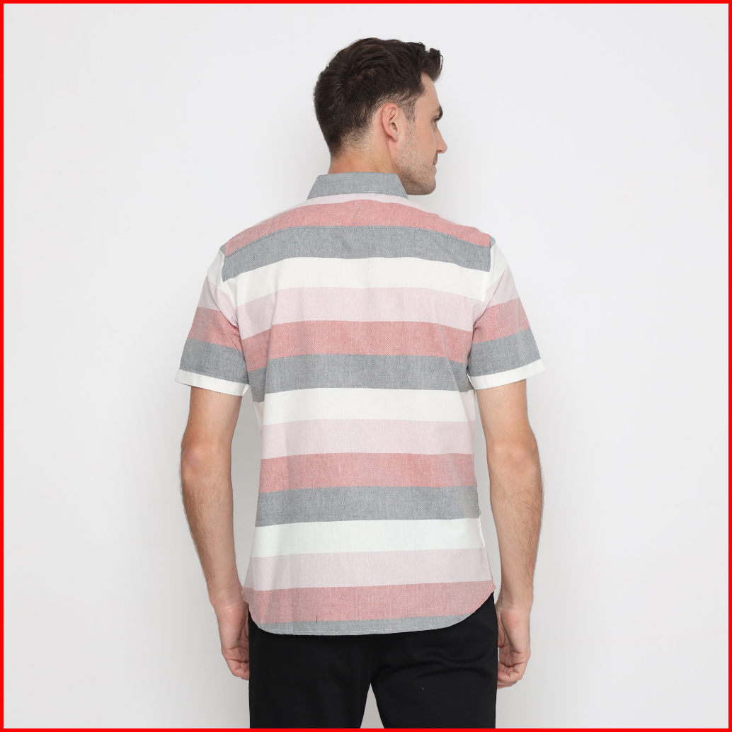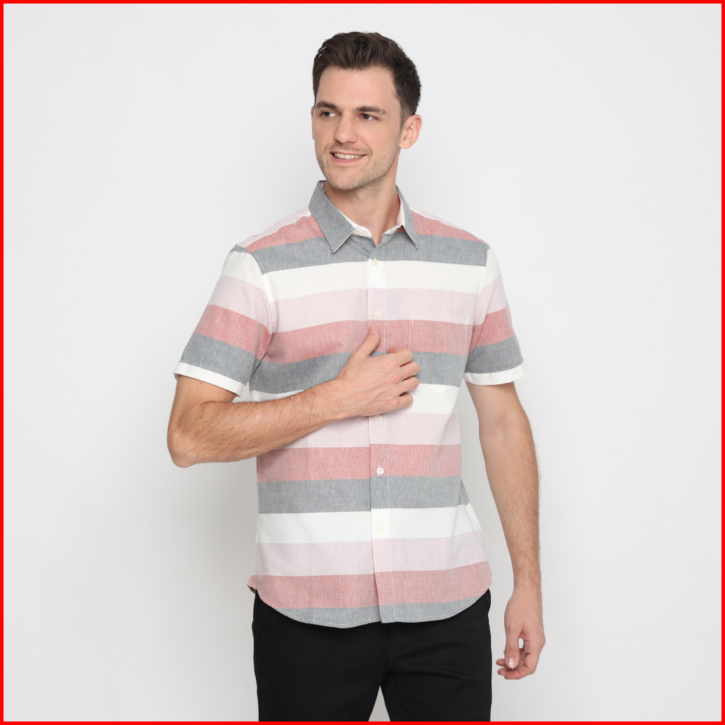 Platini Kemeja Salur Pria Lengan Pendek Katun Merah 73426