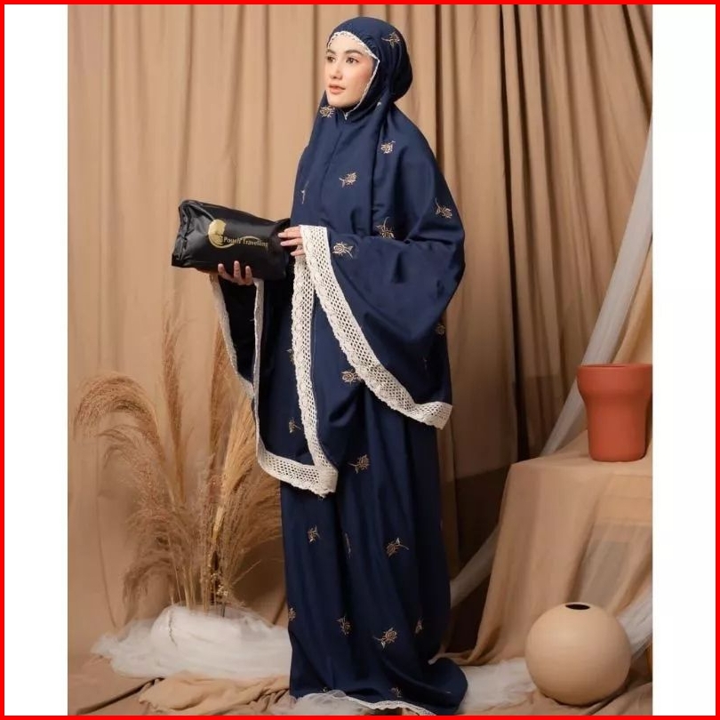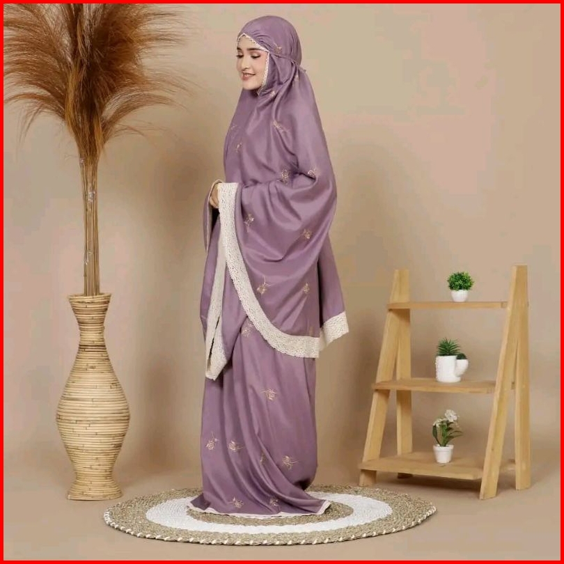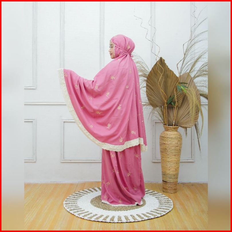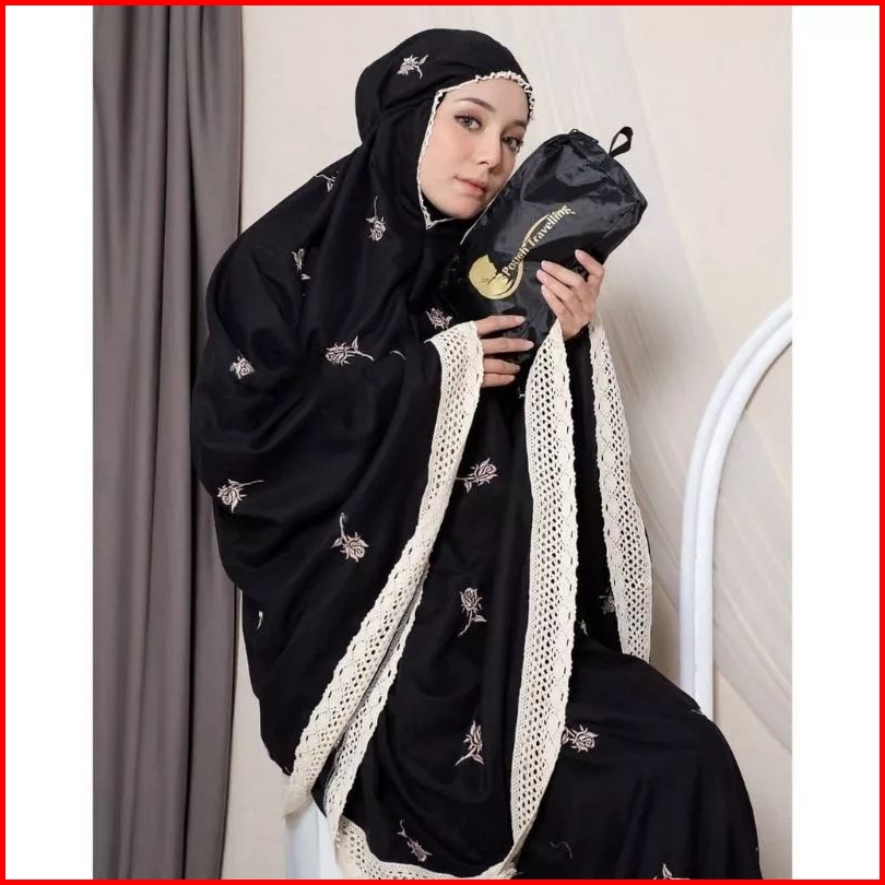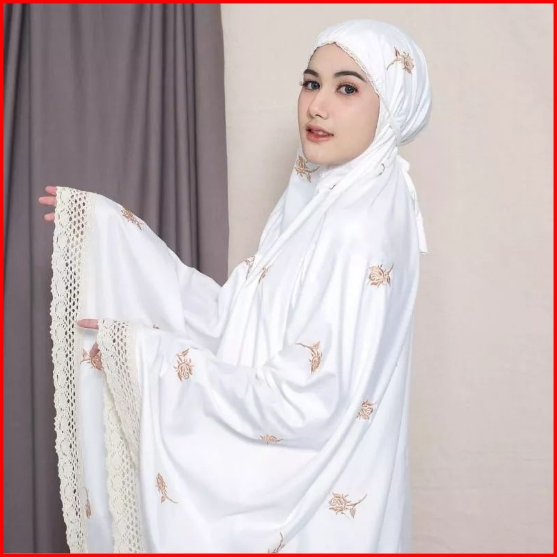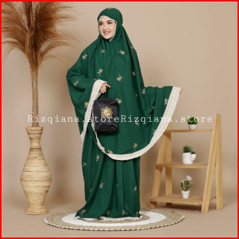 Rizqiana Store - Mukena Dewasa Jumbo Bordir Bunga Tulip Free Tas Pouch