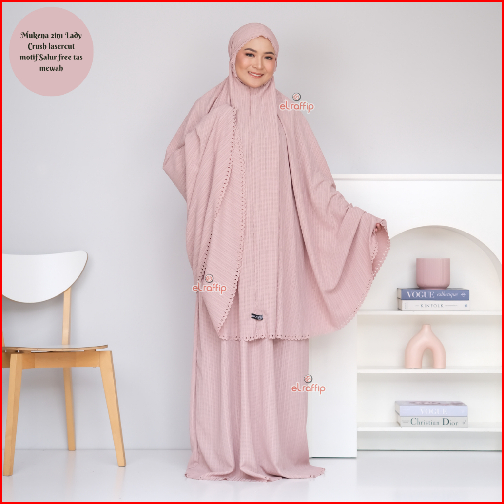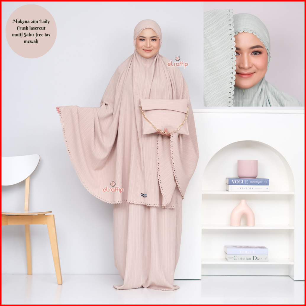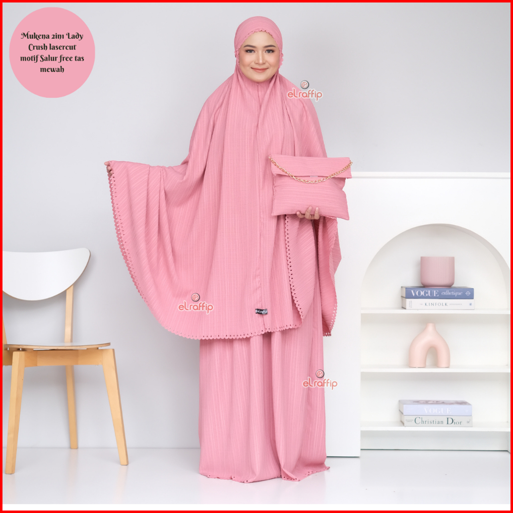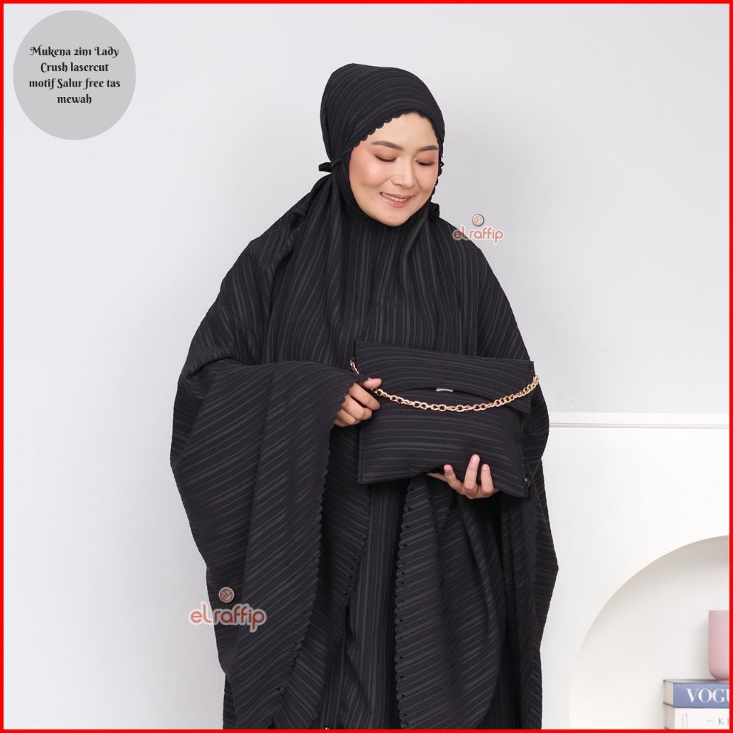Elraffip-mukena Dewasa 2in1 Lady Crush Lasercut Tas Mewah
