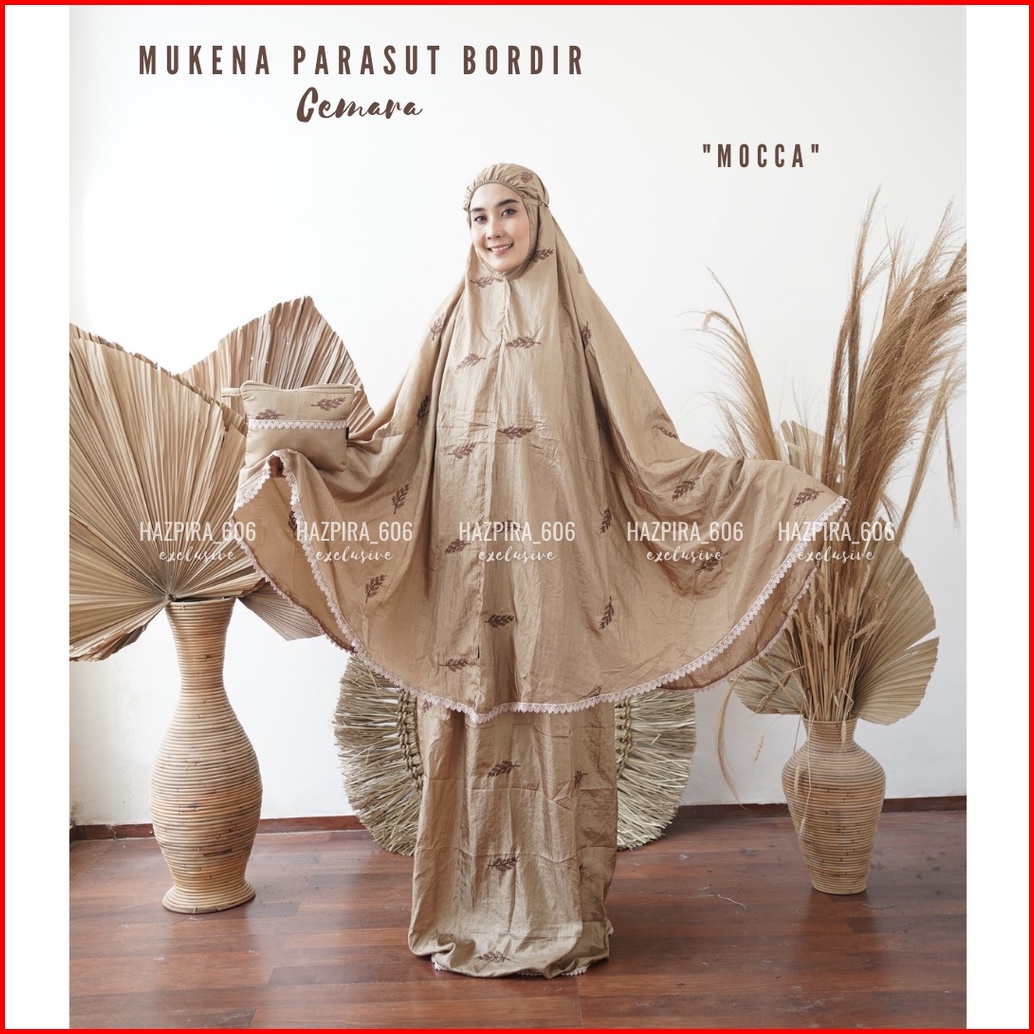 Mukena Dewasa Bordir Cemara Parasut Premium Treveling Jumbo