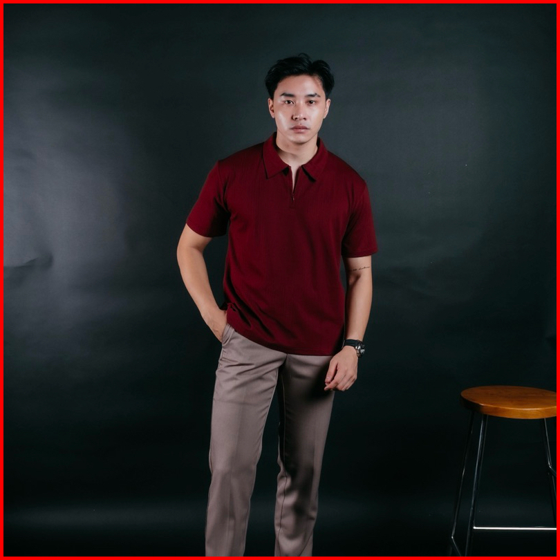 Male - Liam Zipper Polo Men Knit Shirt Pakaian Atasan Pria Fashion Cowok Terkini