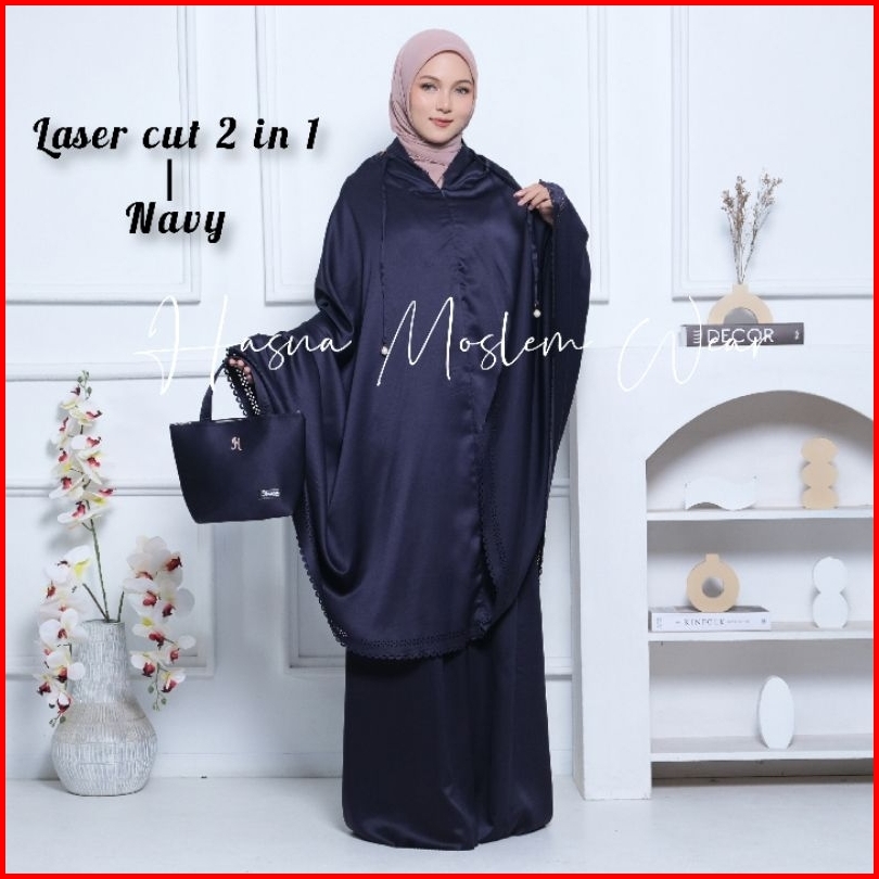 Hasna - Mukena Silk Premium Dewasa Mukena Travel Mukena Satin Silk Jumbo Dewasa Mukena Terbaru 2024 2in1