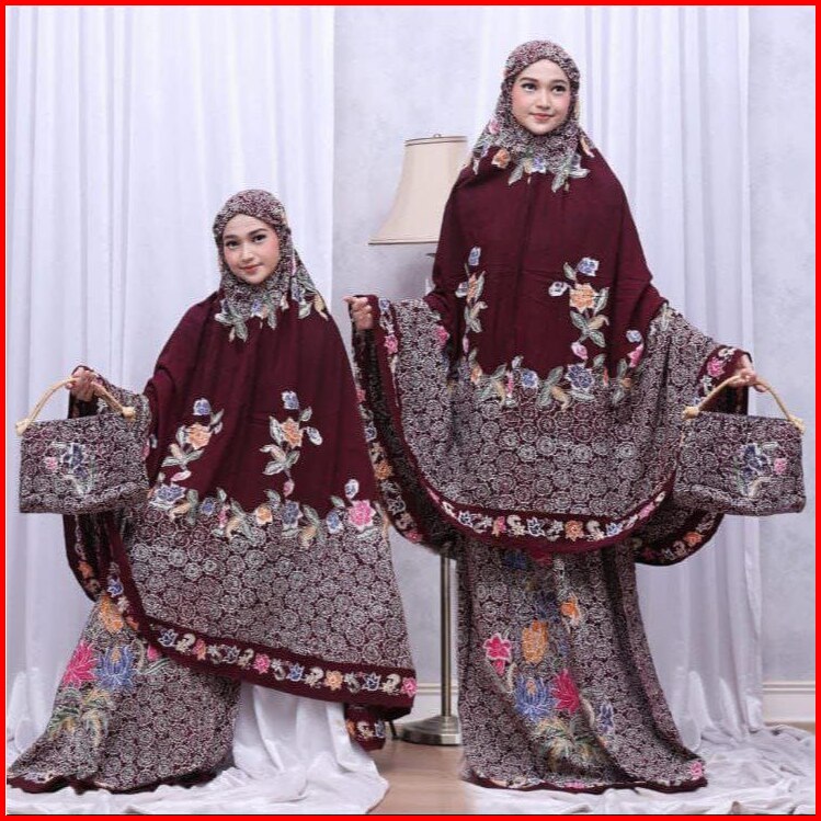 Mukena Batik Jumbo Mukenah Dewasa Cap Encim Bahan Rayon Terbaru Pring Warna