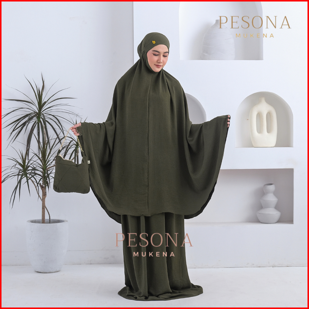 Pesona - Mukena Dewasa Penutup Dagu Crinkle Premium Polos Mukenah Malaysia