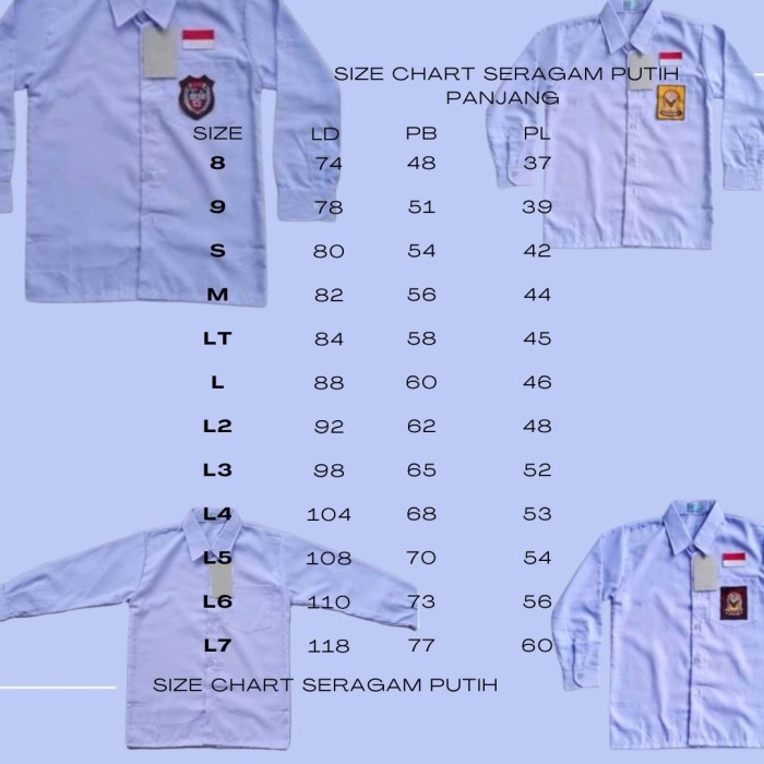 SERAGAM PUTIH SEKOLAH SD SMP SMA / POLOS LENGAN PANJANG - POLOS, 8