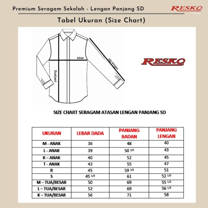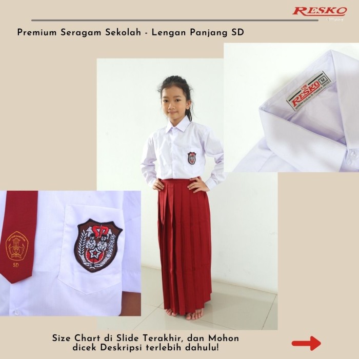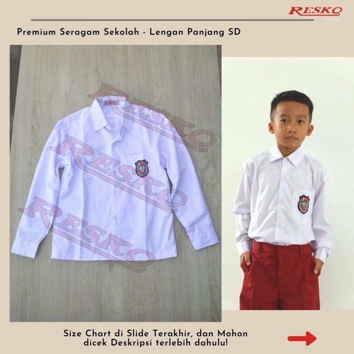 BAJU LENGAN PANJANG ATASAN SD - SERAGAM SEKOLAH RESKO - L-ANAK