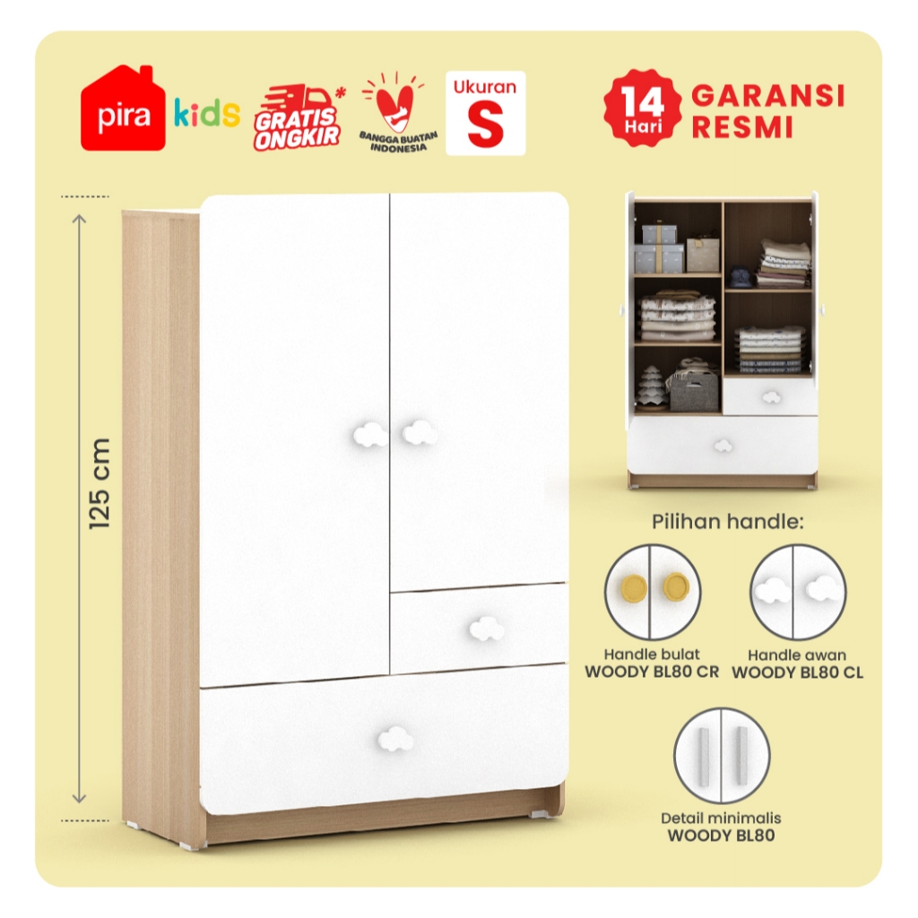 lemari pakaian Woody BL80 Lemari Pakaian Anak 2 Pintu Full Rak