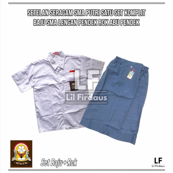 SETELAN SERAGAM SMA PEREMPUAN - BAJU SMA LENGAN PENDEK, ROK ABU PENDEK - SET BAJU+ROK, XXL