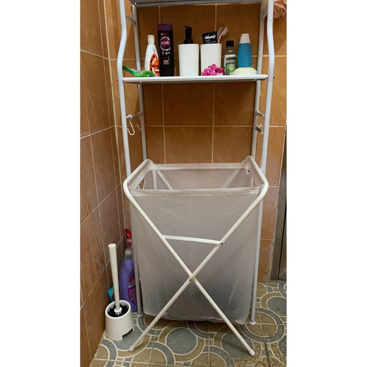 Keranjang Laundry Lipat Tempat Cucian Tempat Baju Kotor Stand Kokoh Putih Polos Minimalis Dapat Dilipat Stylish