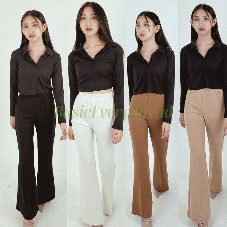 Stok Terbatas Basiceveryday Celana Cutbray Pants Wanita Basic Celana Rib Knit