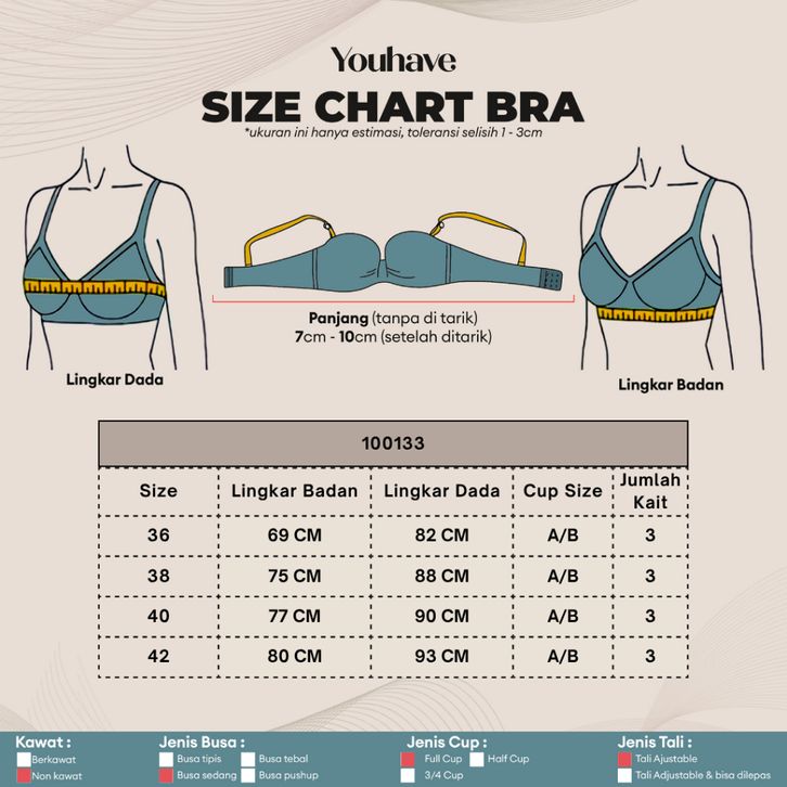 BH Bra Wanita BH Tanpa Kawat Busa Tipis Motif Garis Beha Perempuan Women Woman Remaja 100133