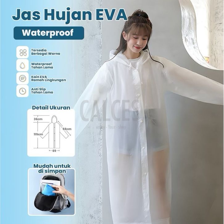 Jas Hujan EVA Dewasa Premium Mantel Ujan Jumbo Kancing Ponco Plastik Ringan Transparan Lightweight Raincoat