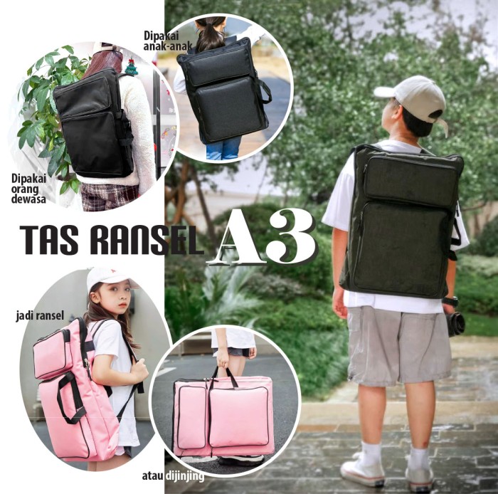 BACKPACK TAS RANSEL A3 GAMBAR ARSITEK LUKISAN ANAK - HITAM