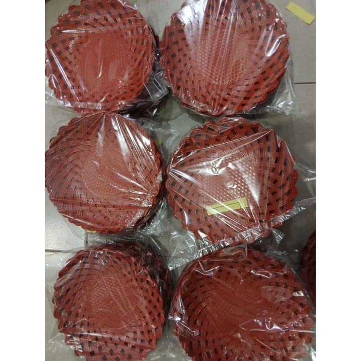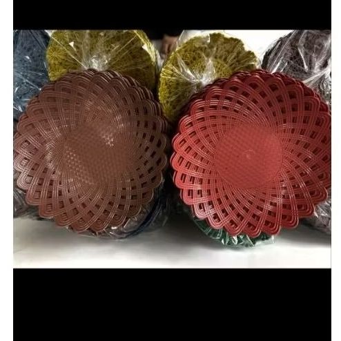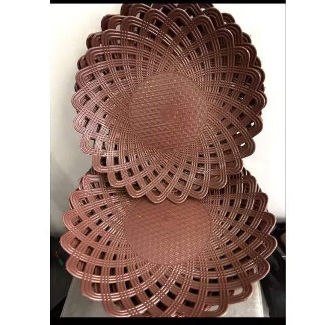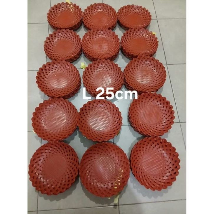Piring Rotan Plastik 25 cm Merah Bata Isi 3 Lusin (36 pcs)