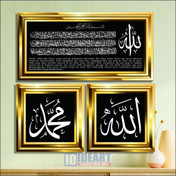 Hiasan Dinding Islami Hiasan Ruang Tamu Kamar Tidur Kaligrafi Allah Muhammad Ayat Kursi Warna Gold Silver Stylish