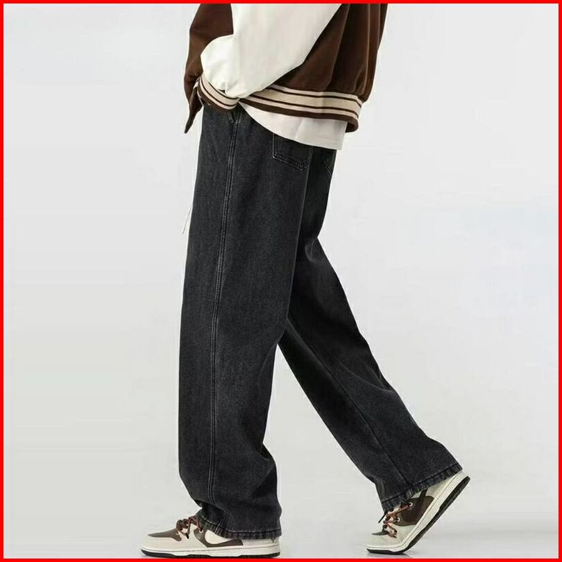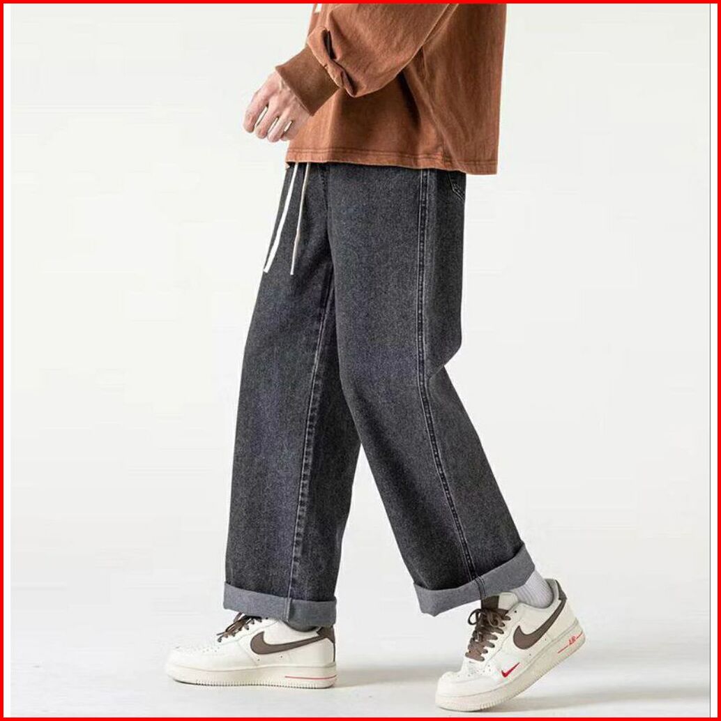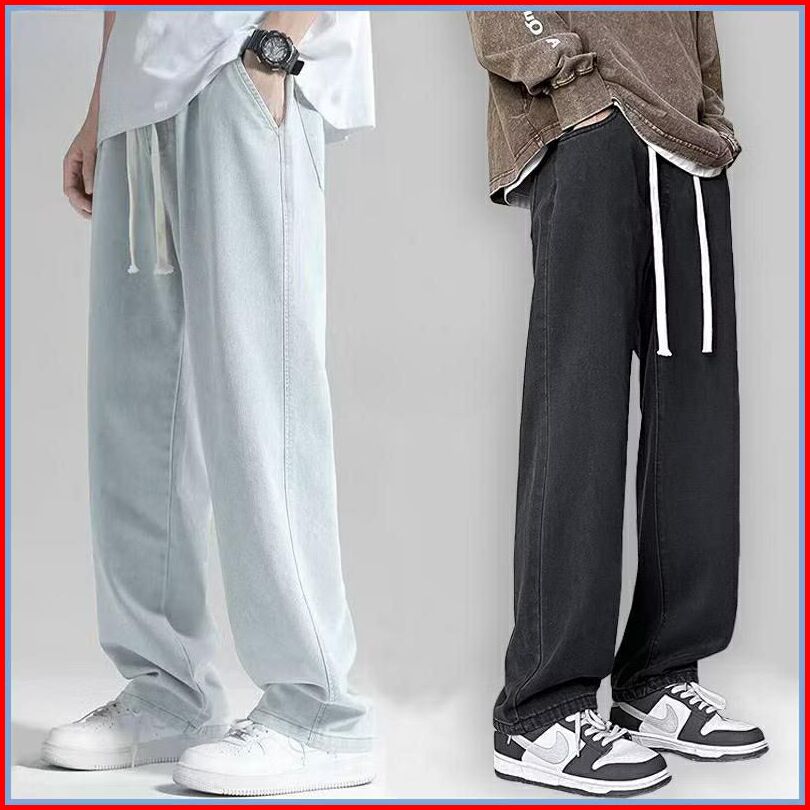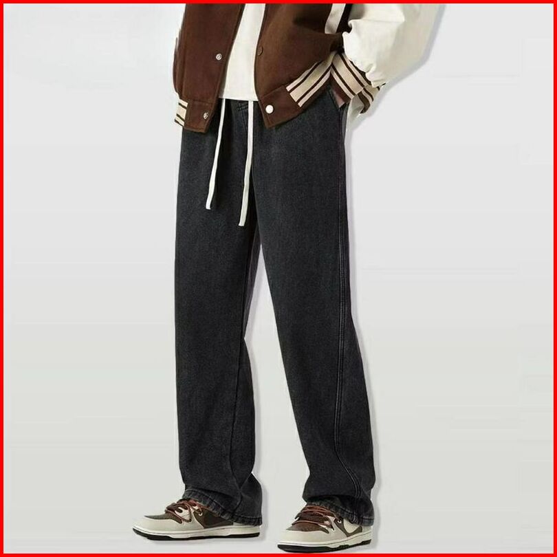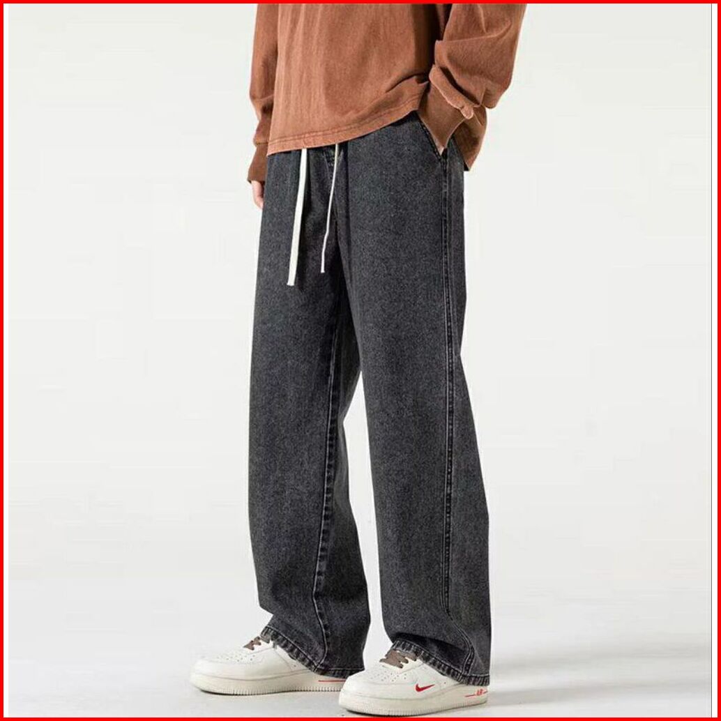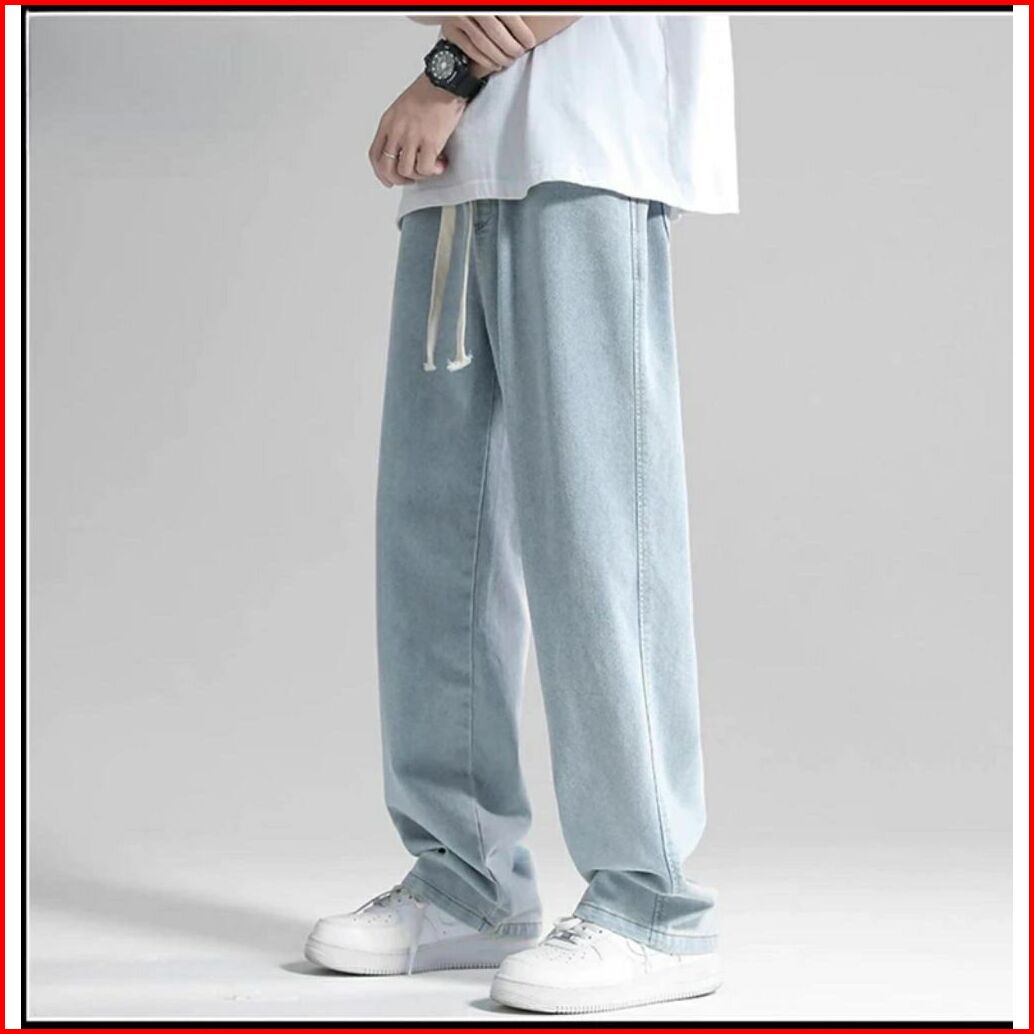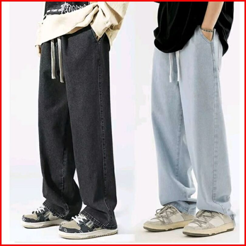 Celana Jeans Pria Pinggang Karet Korean Style Jumbo Loose Pants Oversize Kulot Denim Pria Kekinian Jeans Biru Muda Nyama