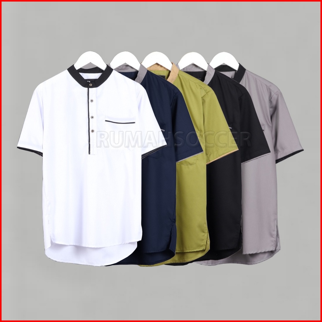 Baju Koko Pria Lengan Pendek Polos Akhtar Bahan Katun Toyobo Adem Terbaru