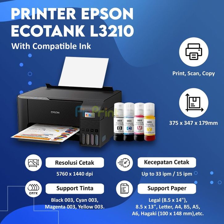 Epson L3210 Print Scan Copy Pengganti Printer L3110 l360 Tinta 003 C13T00V Garansi Resmi Multifungsi All In One AIO Prin