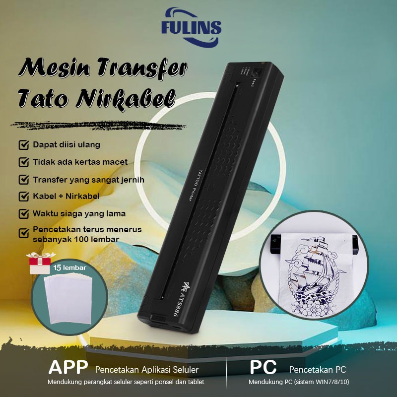 printer tattoo ATS886 thermal/tattoo printer/USB&Printer Bluetooth Portabel Alat Tato/mesin printer/Ukuran Mini Dengan/P