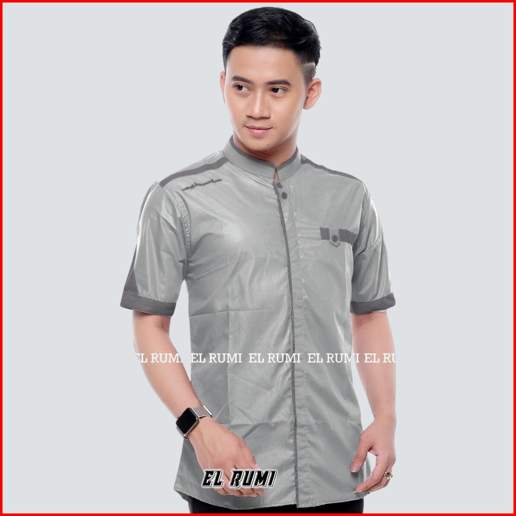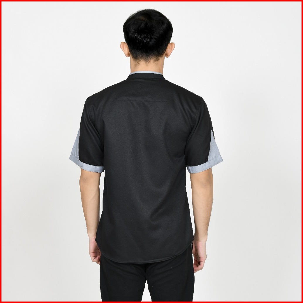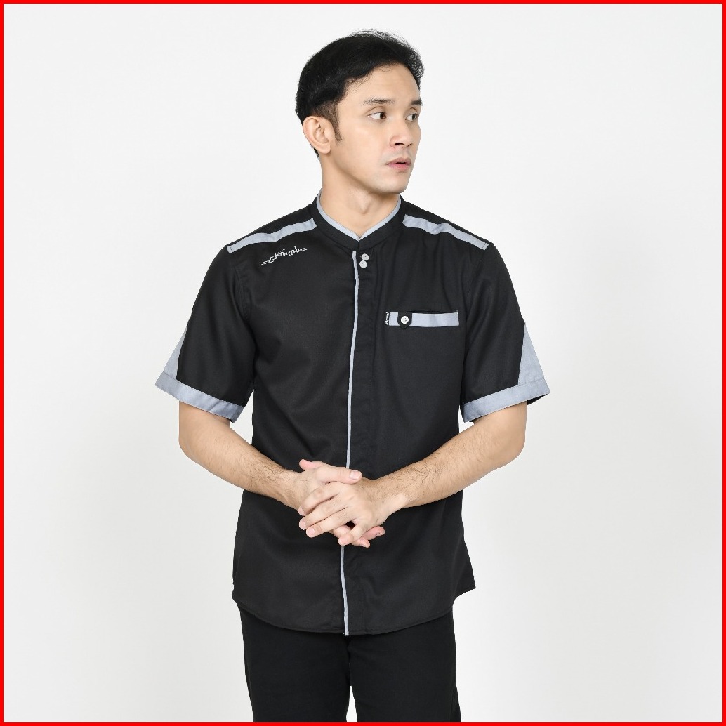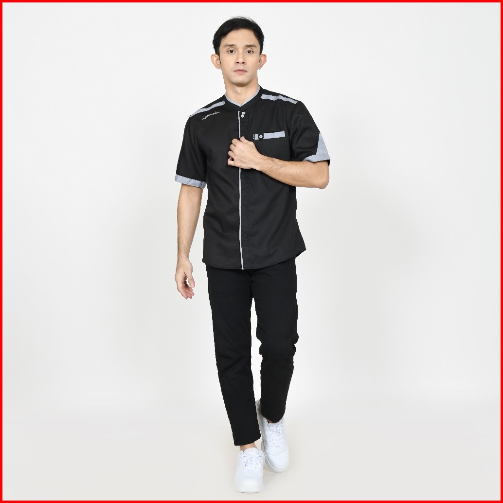 Baju Koko Pria Dewasa Lengan Pendek Warna Hitam Motif Yisunsin Kombinasi Bordir Elrumi Katun