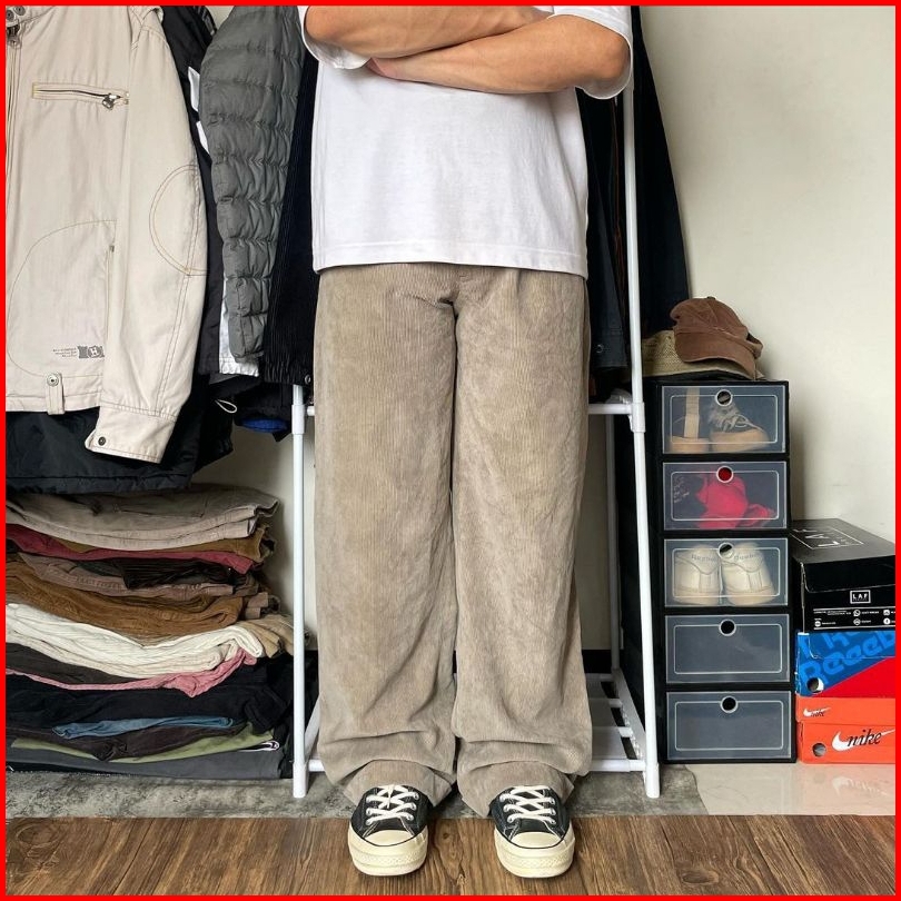 Celana Corduroy Panjang Pria Wanita Oversize Gombrang Korean Style