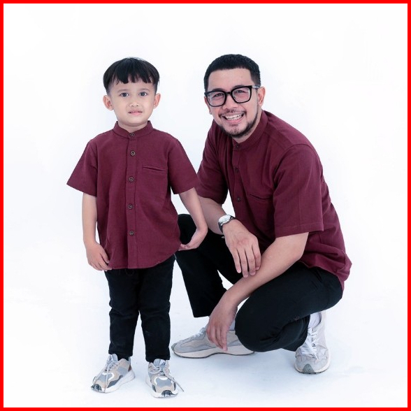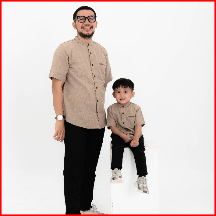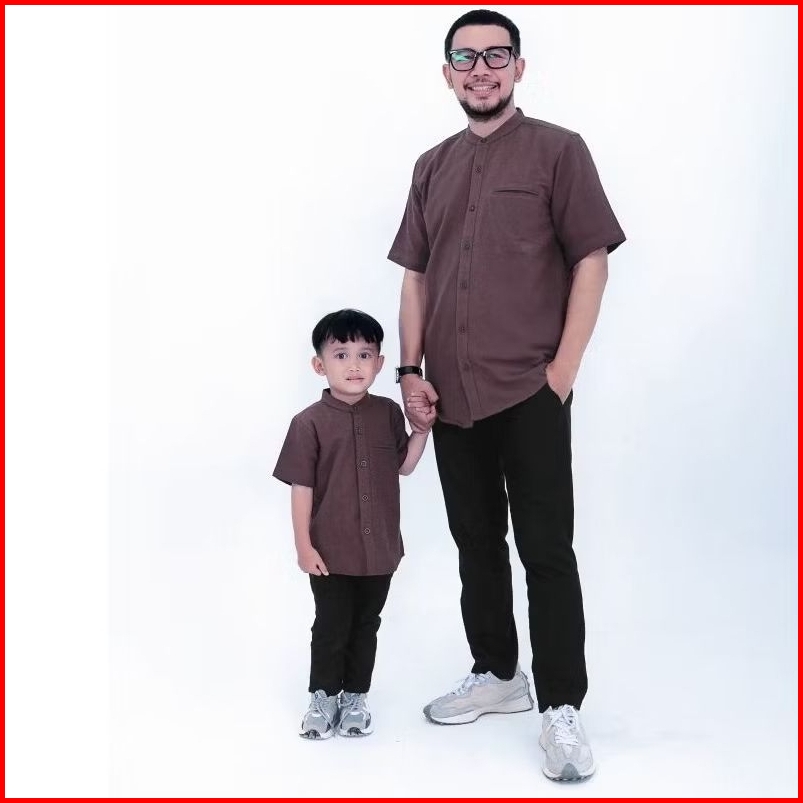 Koko Kemeja Qurta Couple Ayah Dan Anak Anak Pakistan Original Yodan Coklat Mahogany Lengan Pendek