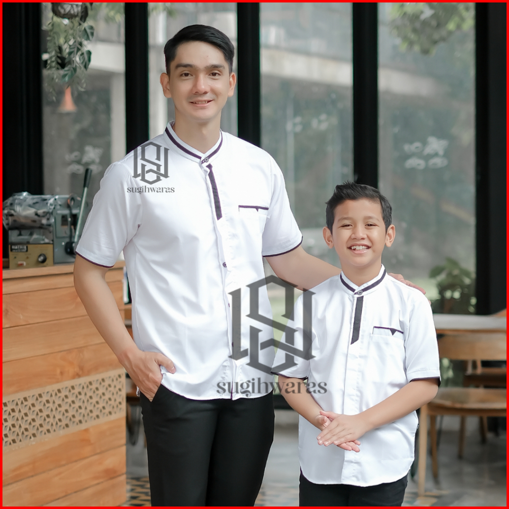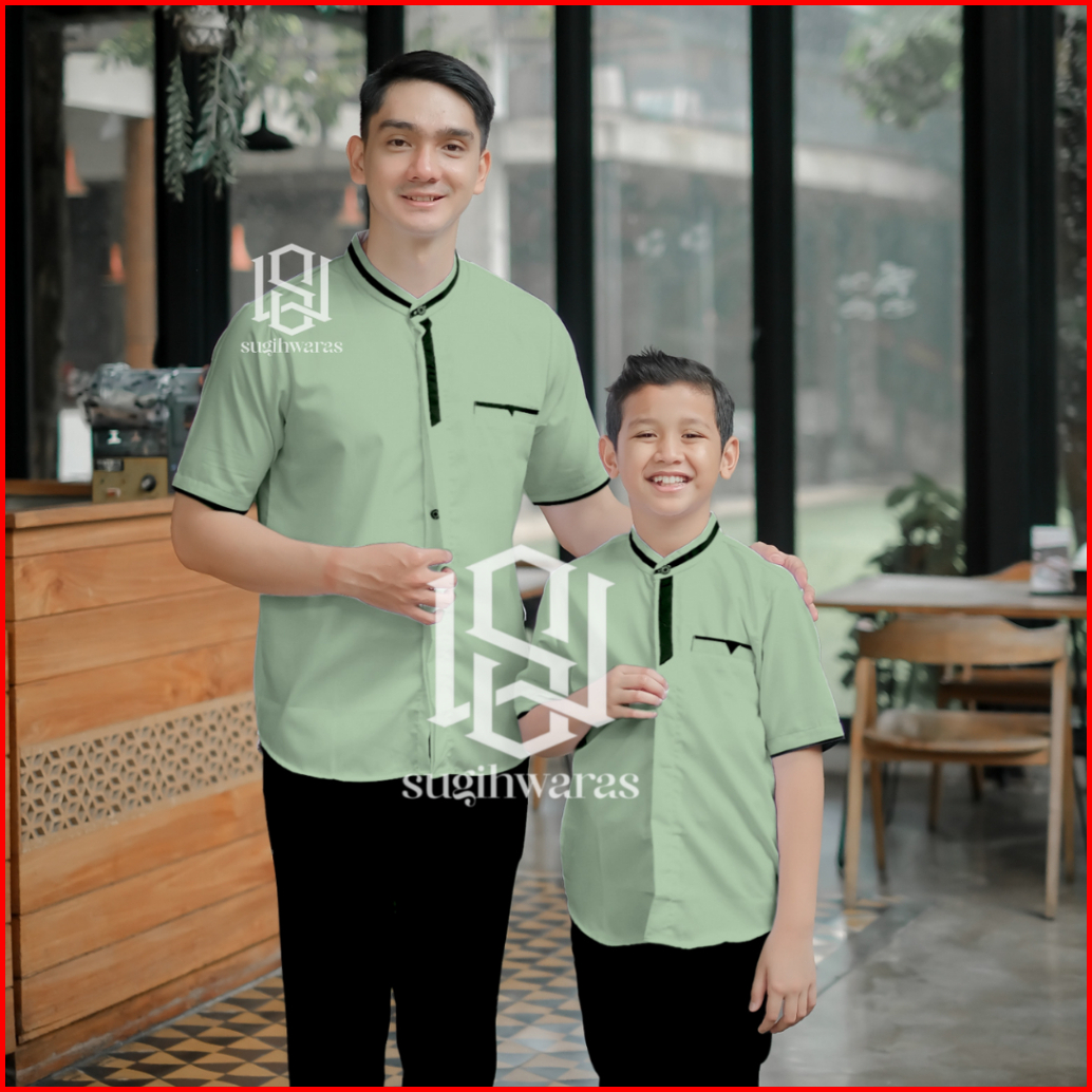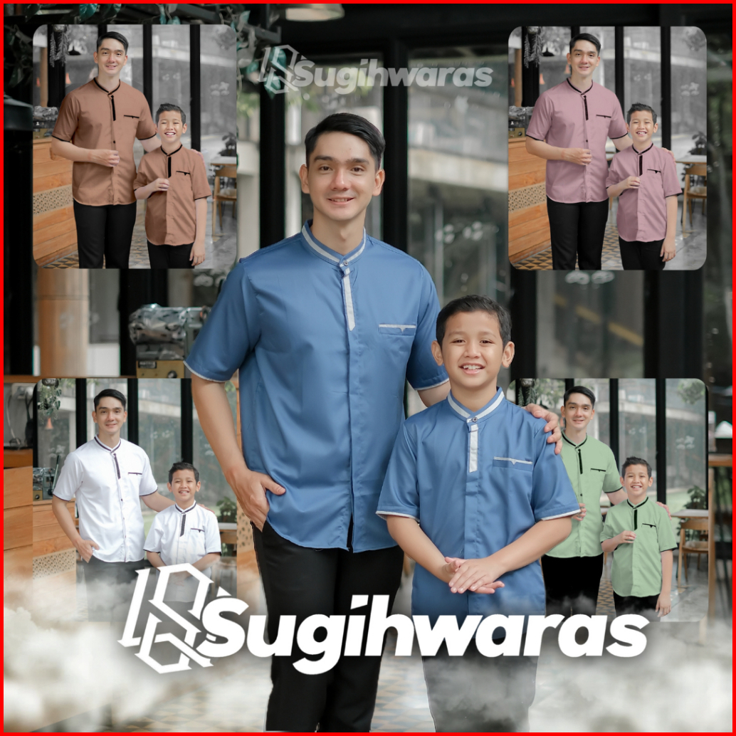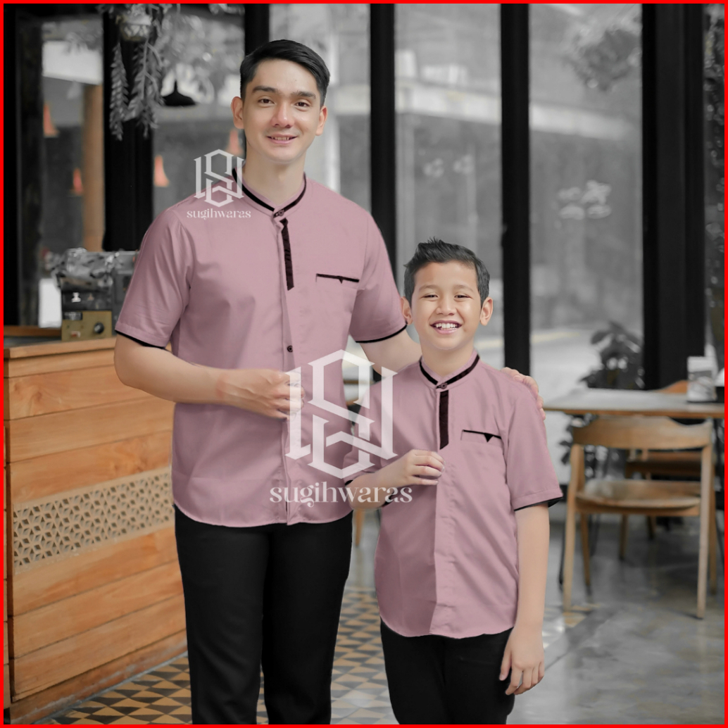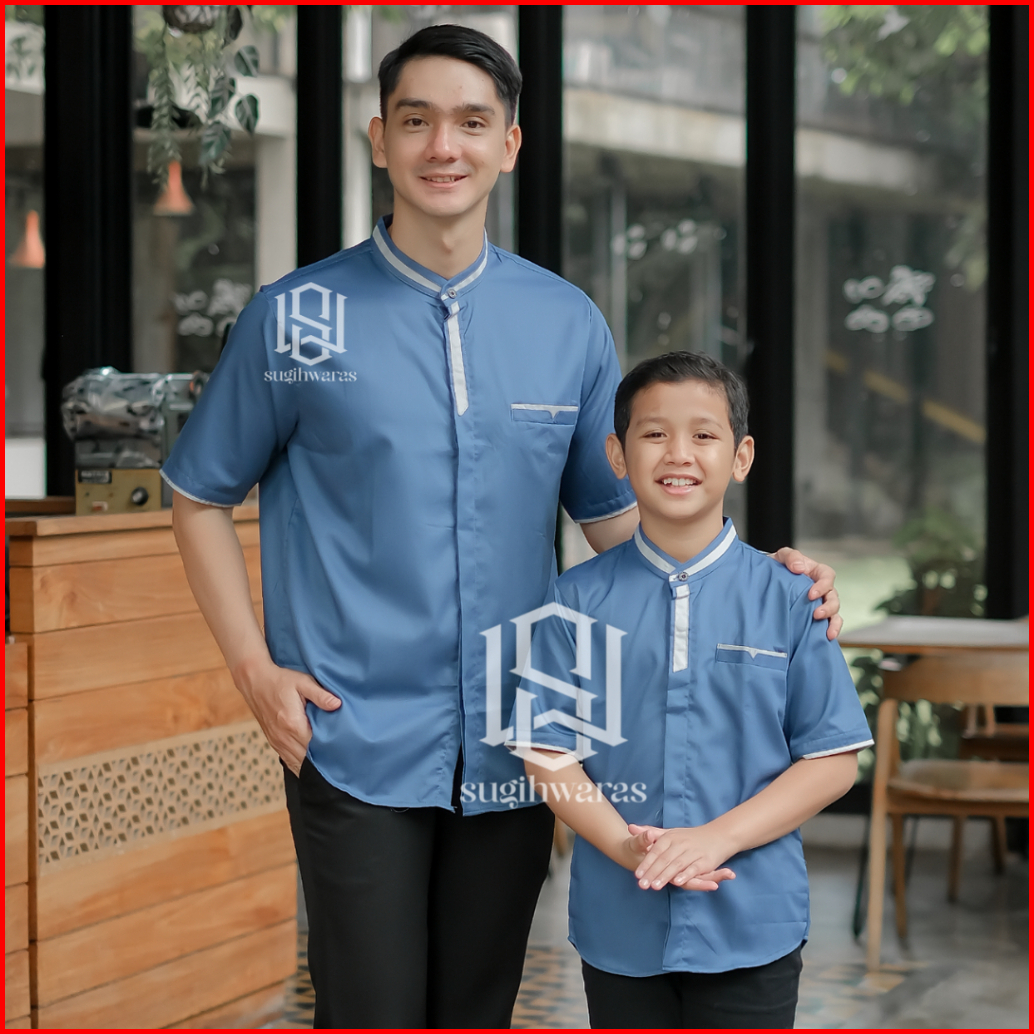 Baju Koko Couple Ayah Dan Anak Laki Laki Lengan Pendek Terbaru Kain Toyobo Warna Denim