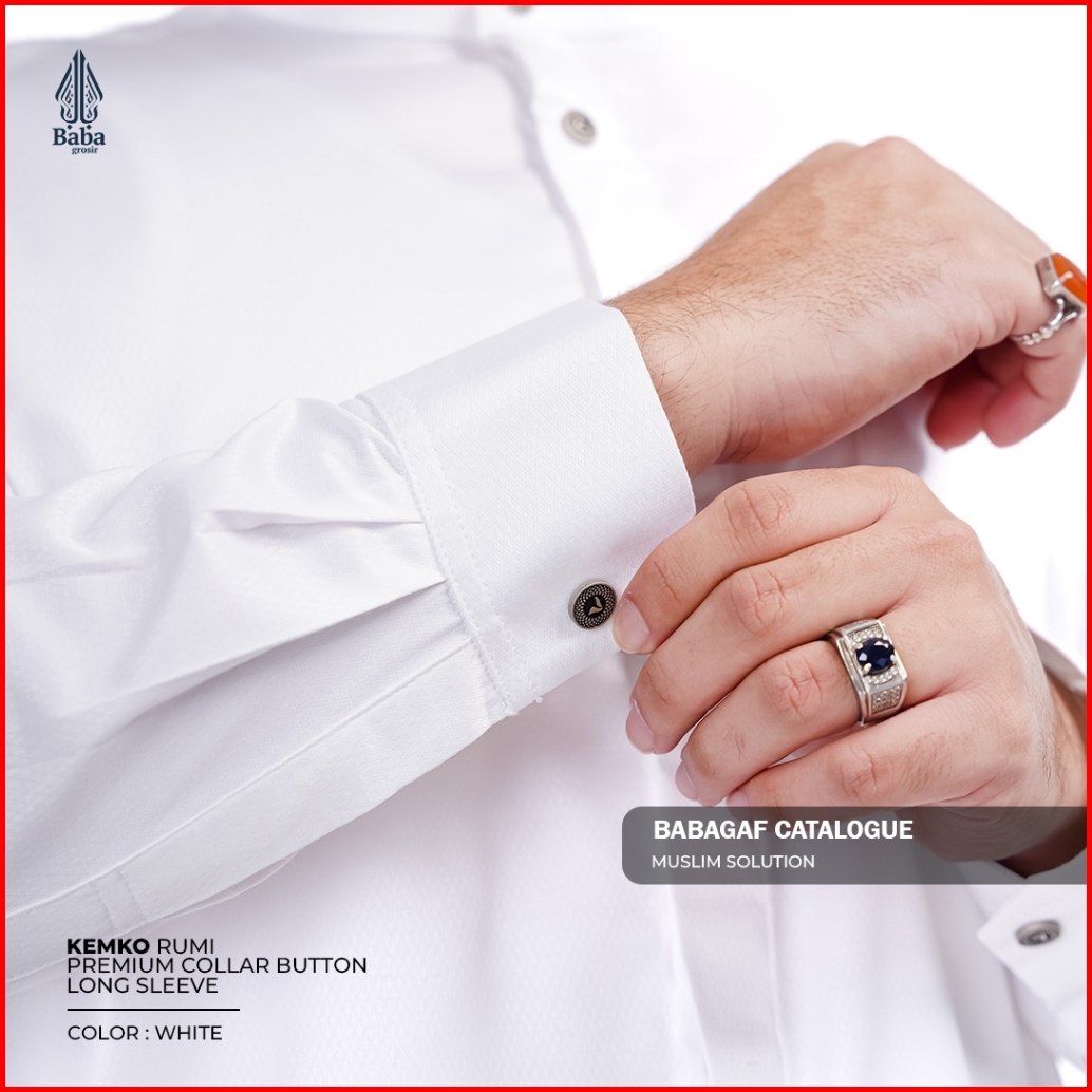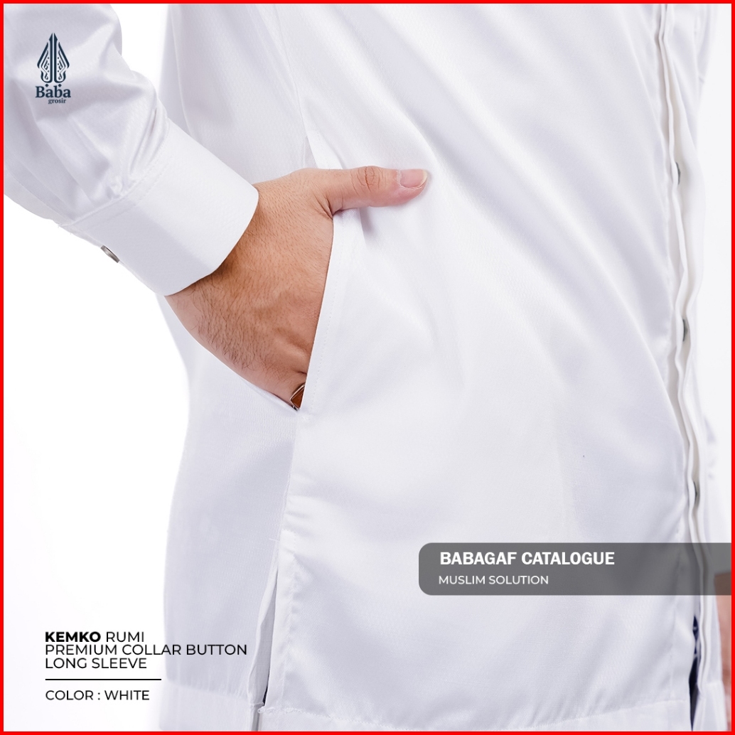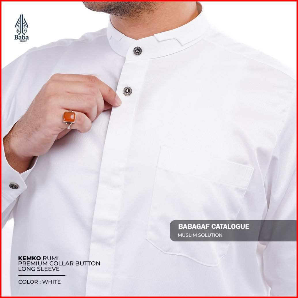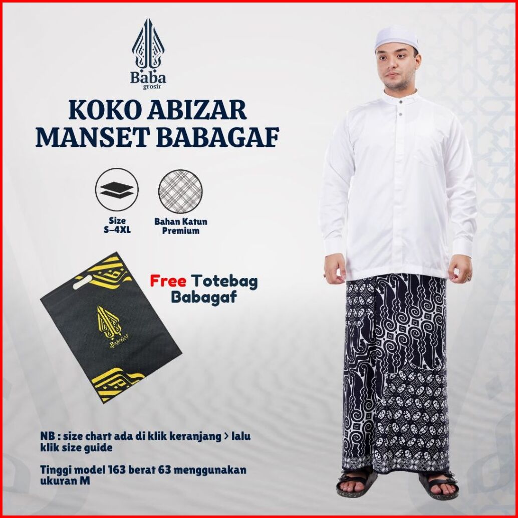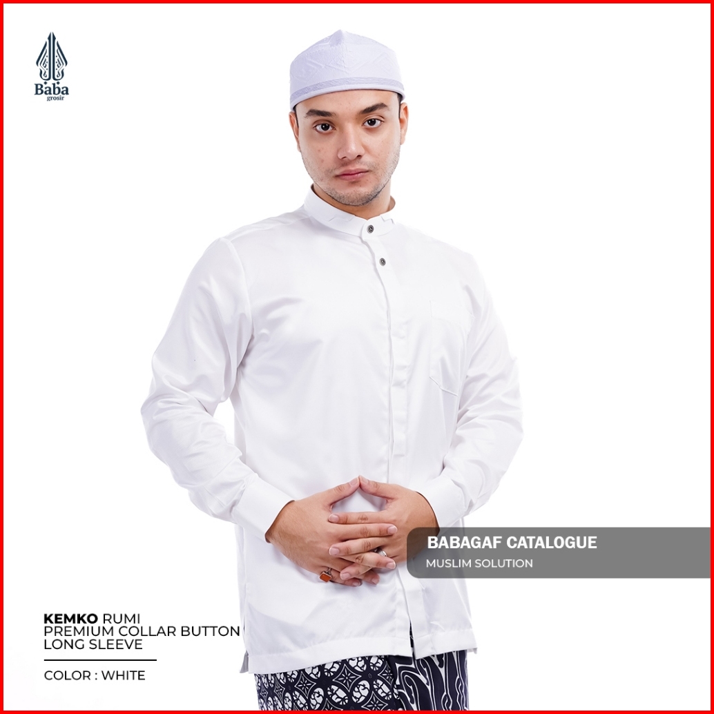 Kemeja Koko Abizar Manset Babagaf Kemko Putih Muslim Pria Dewasa