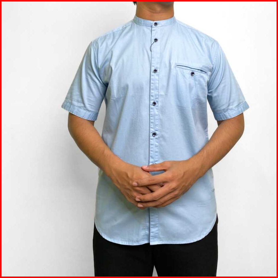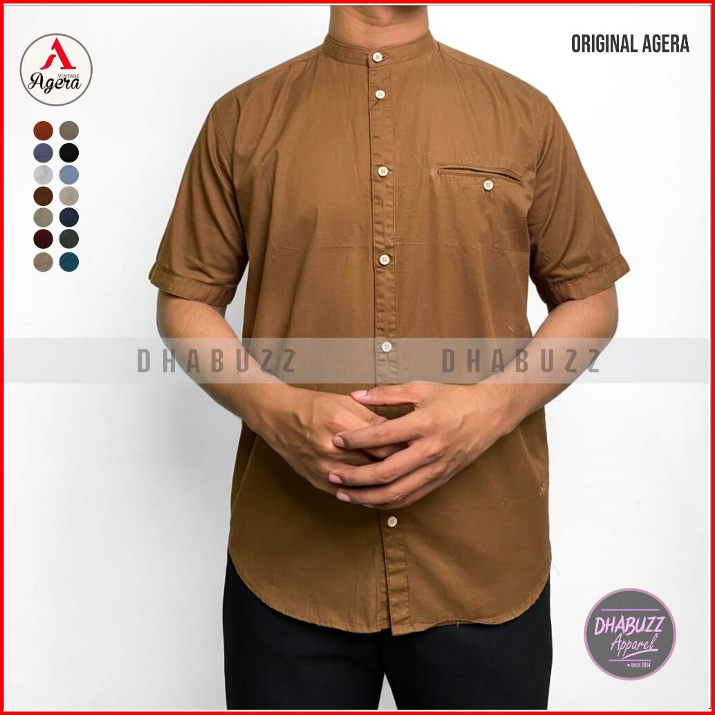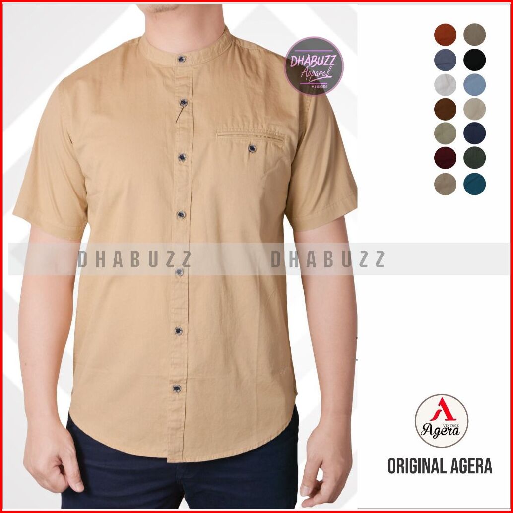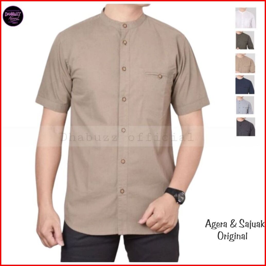 Baju Kemeja Koko Kemko Pria Lengan Pendek Full Kancing Kerah Sanghai Original Agera Sajuak Terbaru