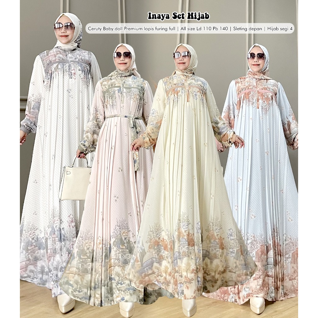 DRESS GAMIS LEBARAN 2073 ILYA FS- INAYA Gamis Muslim Set Hijab Model Terbaru Kekinian Bahan Ceruty By Shireen