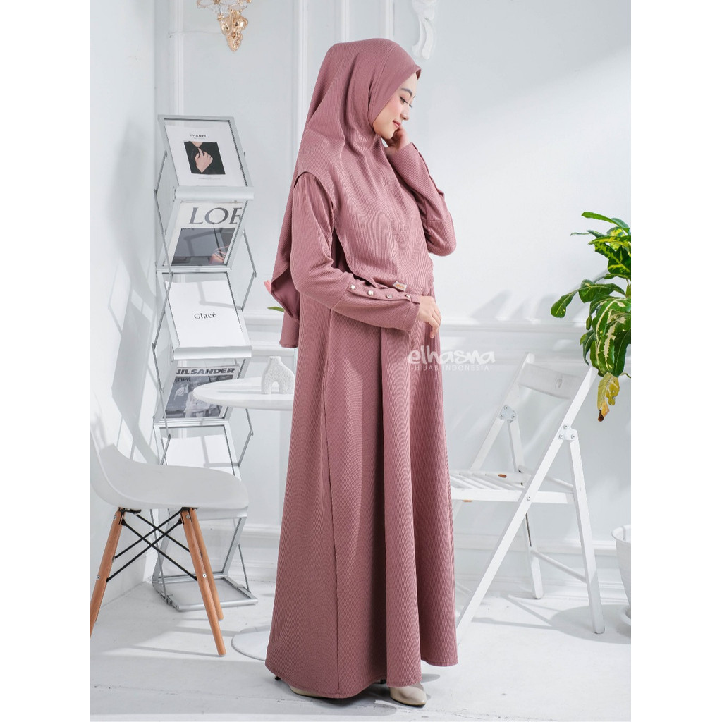 DRESS GAMIS LEBARAN 2147 Elhasna Hijab Indonesia Set Gamis Muslim Allura Knit Button