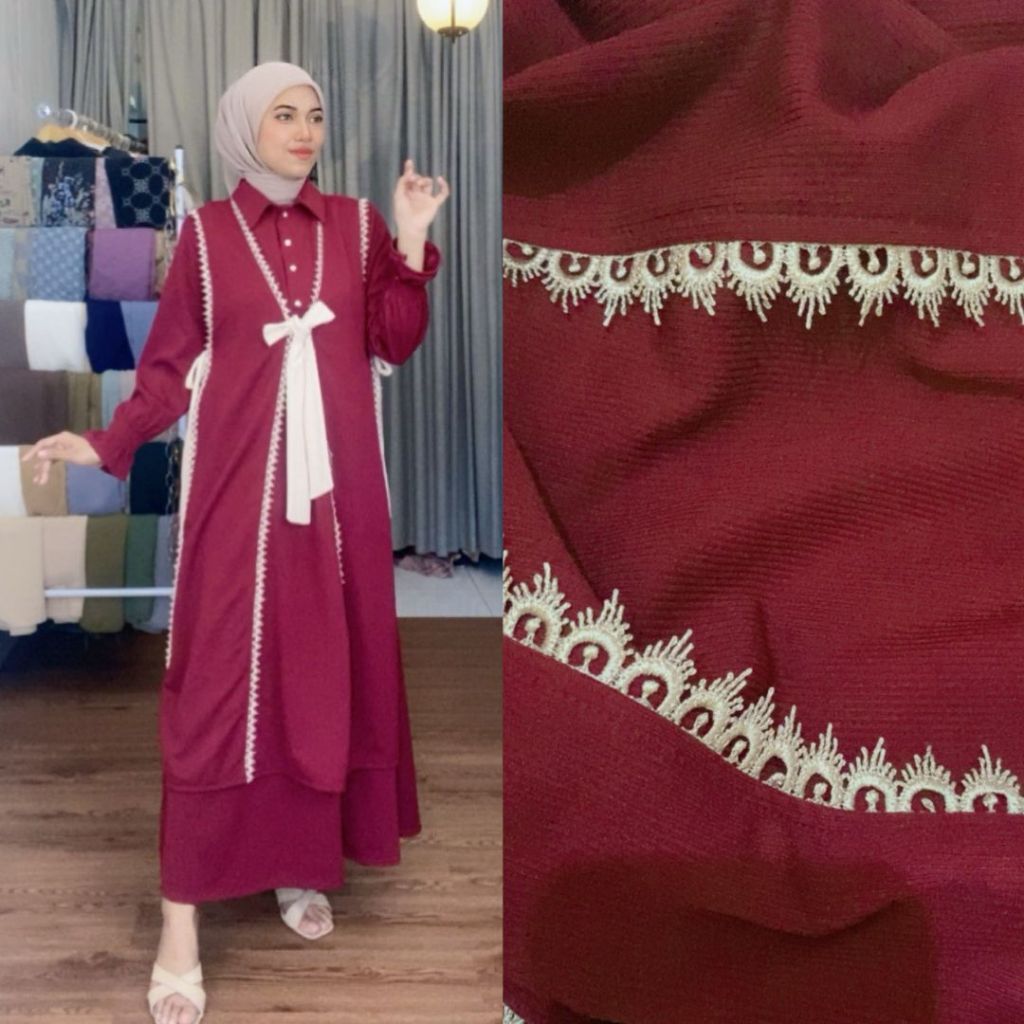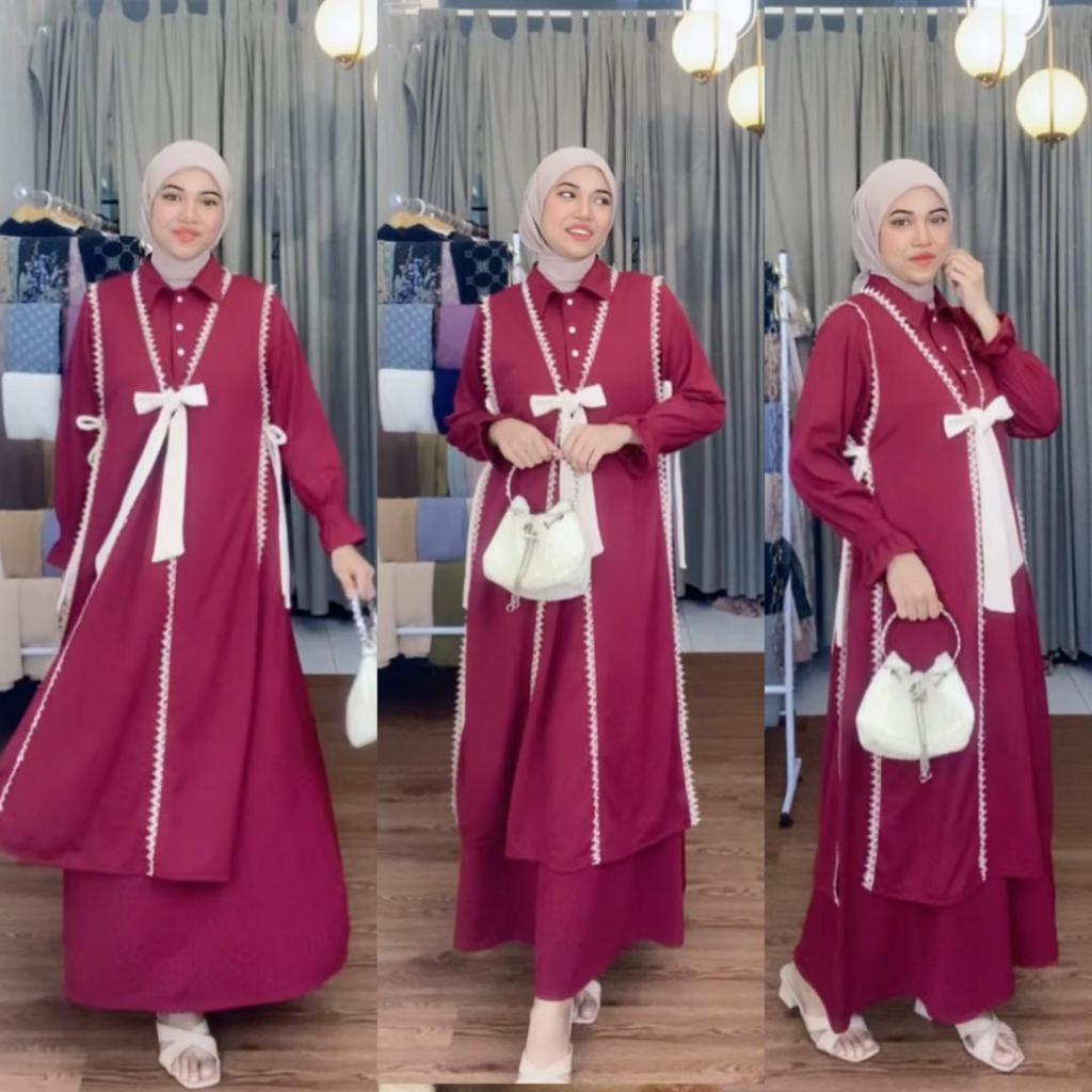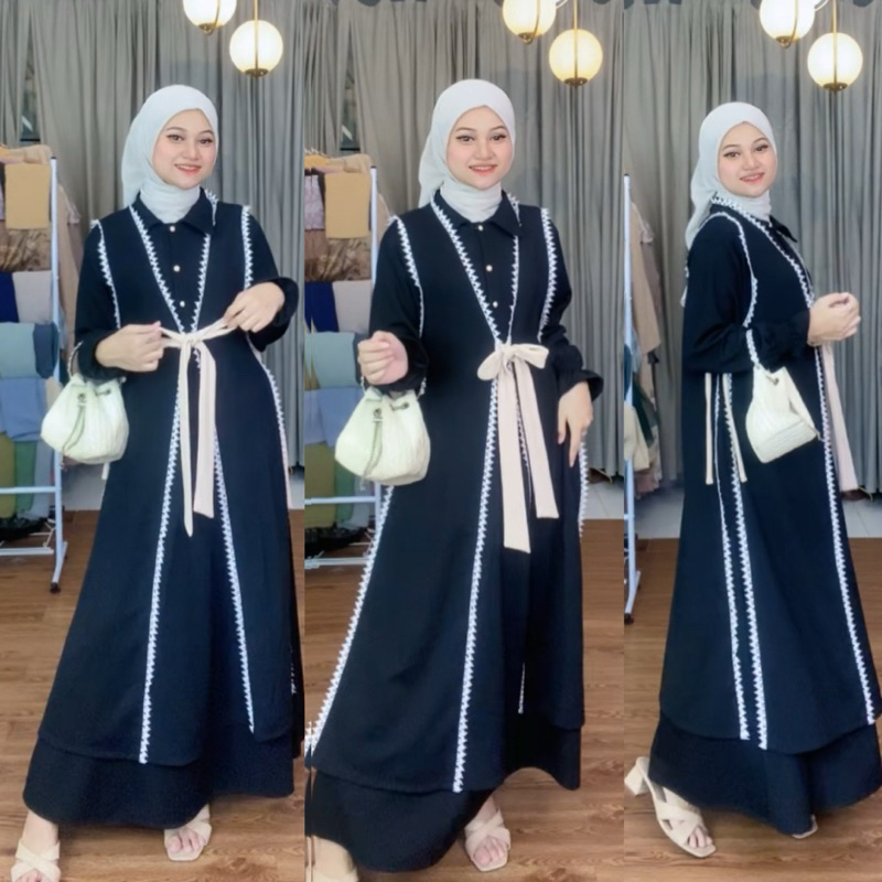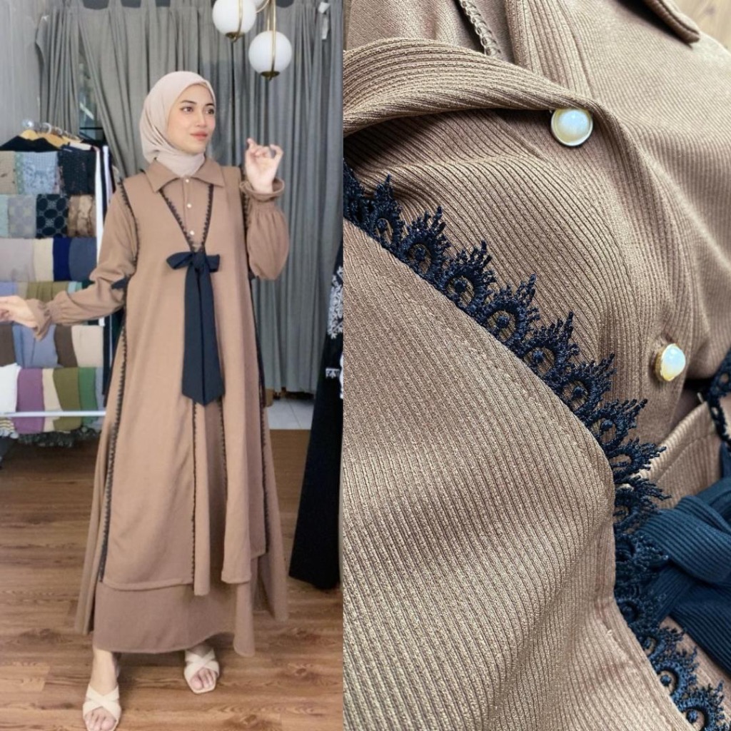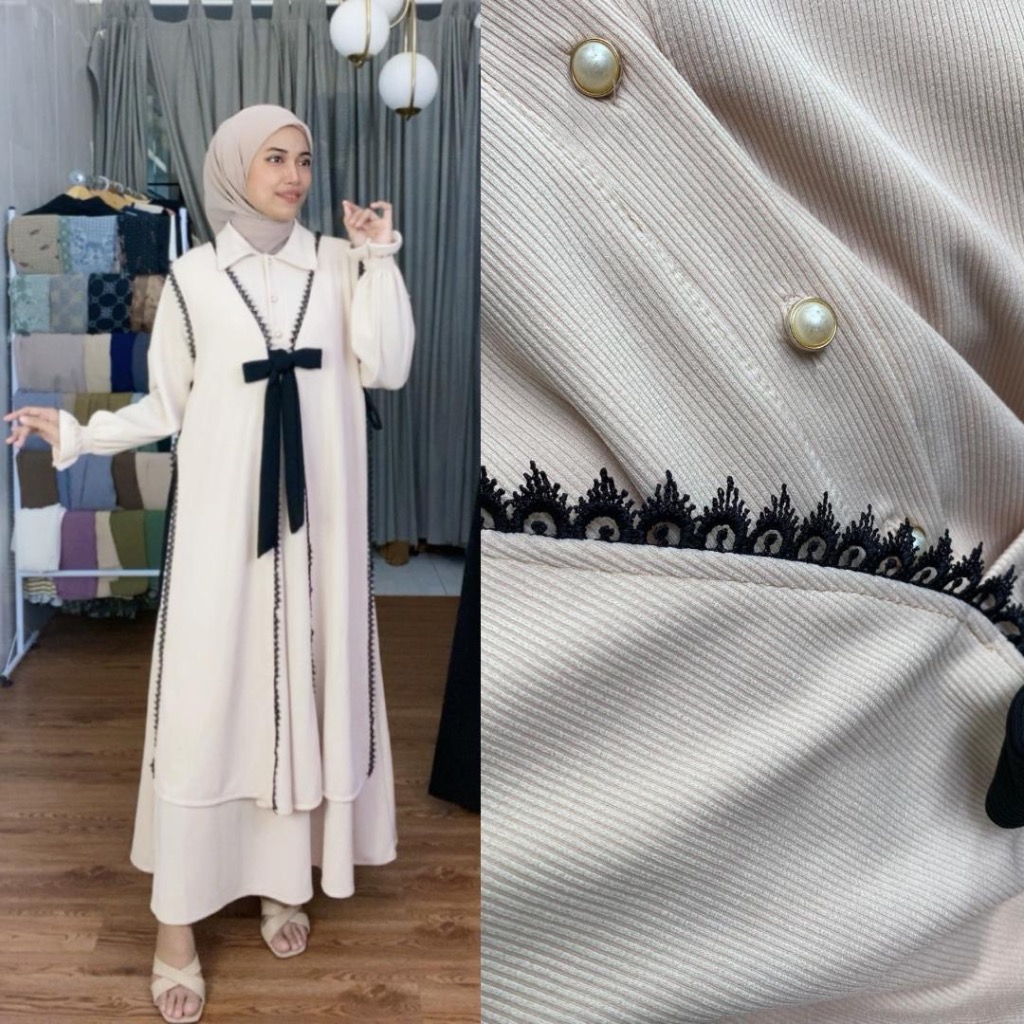 DRESS GAMIS LEBARAN 2188 Joley Cloth - New Arrival Almaira 2 In 1 Knit Baju Busui Daily Muslim Wanita Setelan Lembut Gamis Kancing Wudhu Panjang