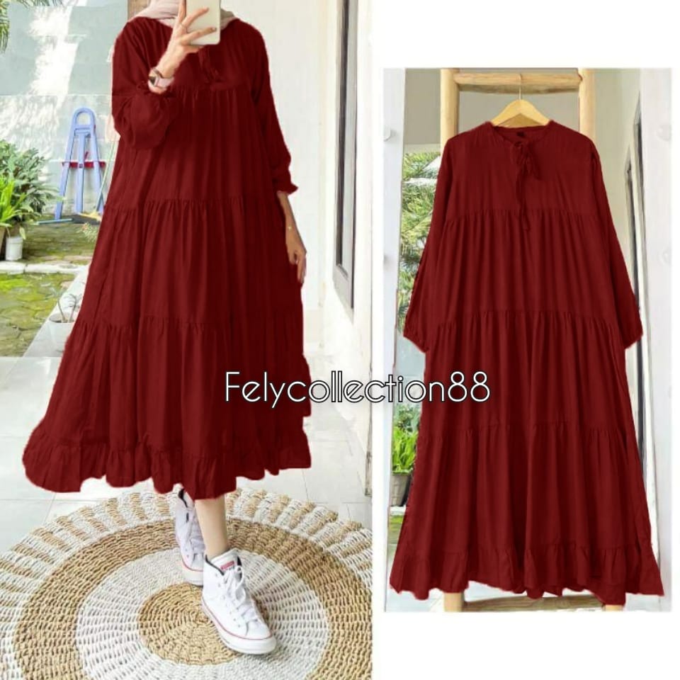 DRESS GAMIS LEBARAN 2068 Rachel Midi Dress Busui Friendly // Gamis Wanita Terbaru Kekinian // Fashion Muslim // Bahan Katun micro