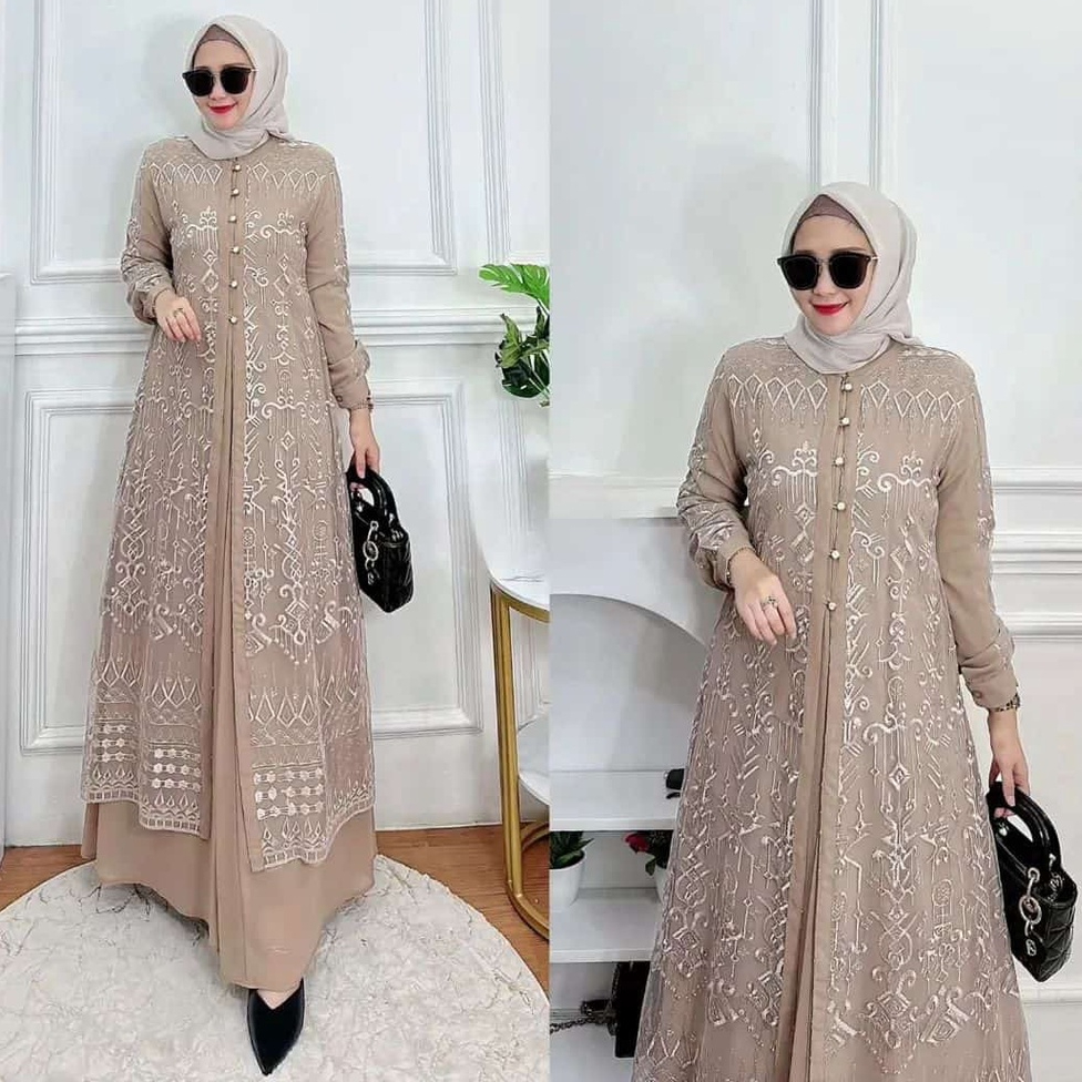 DRESS GAMIS LEBARAN 2117 Vallina Outfit - Sabrina Maxy Dress Brokat Layering Gamis Muslim Wanita Ceruty Babydoll Kondangan Pesta Lebaran Premium