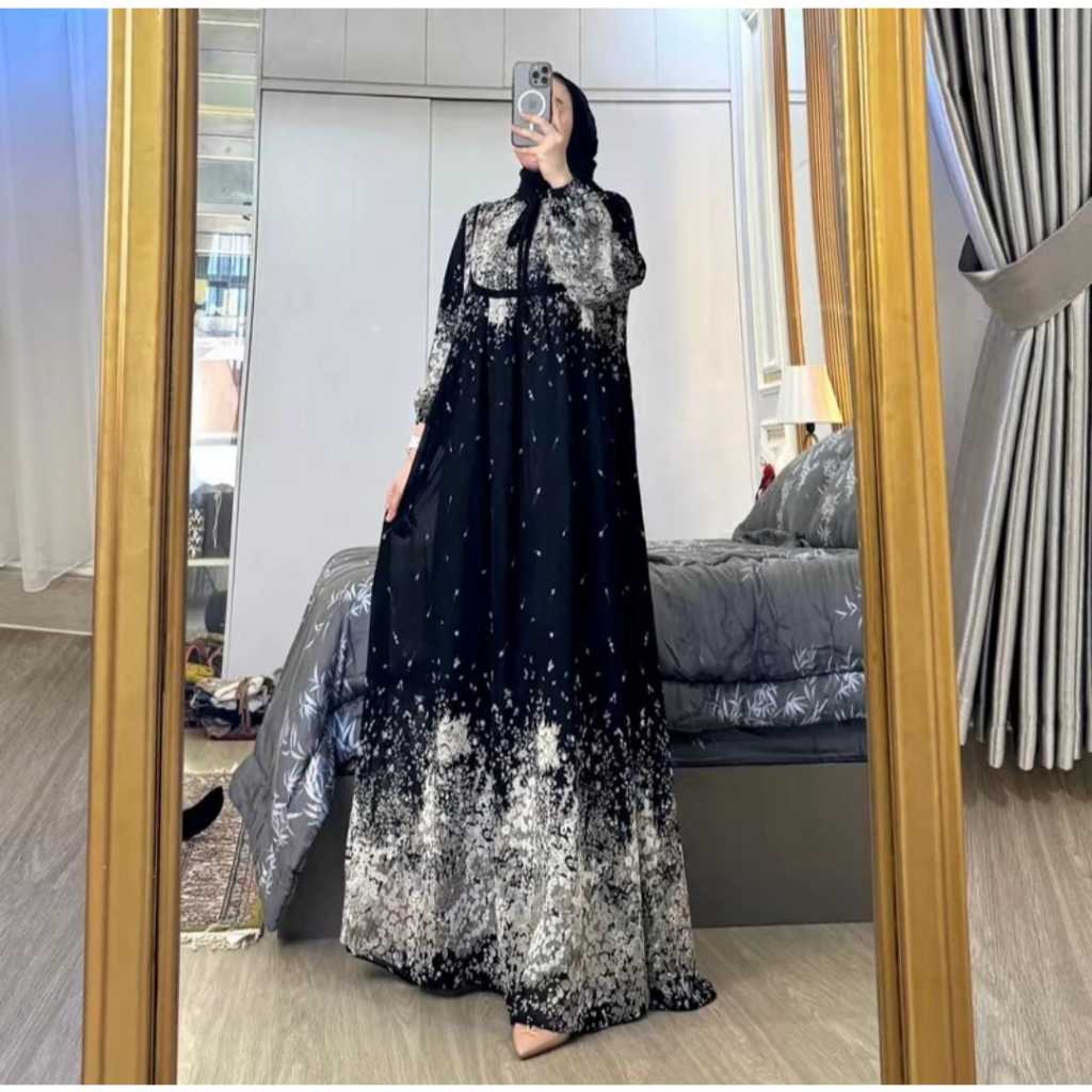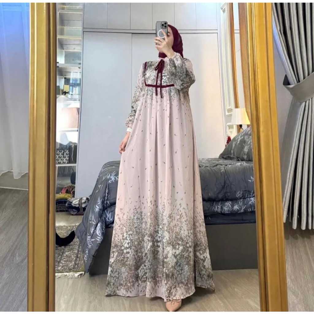 DRESS GAMIS LEBARAN 2135 AMEL - Gamis set hijab Syifa dress wanita mewah busui friendly gamis ceruti elegan set hijab