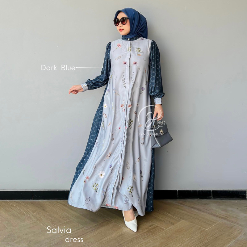 DRESS GAMIS LEBARAN 2163 DYN Clothingline Salvia Dress | Dress Cantik - Dress Fashion Muslim