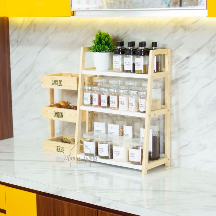 Gratis ongkir Rak Bumbu Estetik / Rak Bumbu Dapur Kayu 3 Susun Jumbo / Rak Susun serbaguna