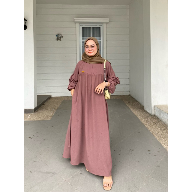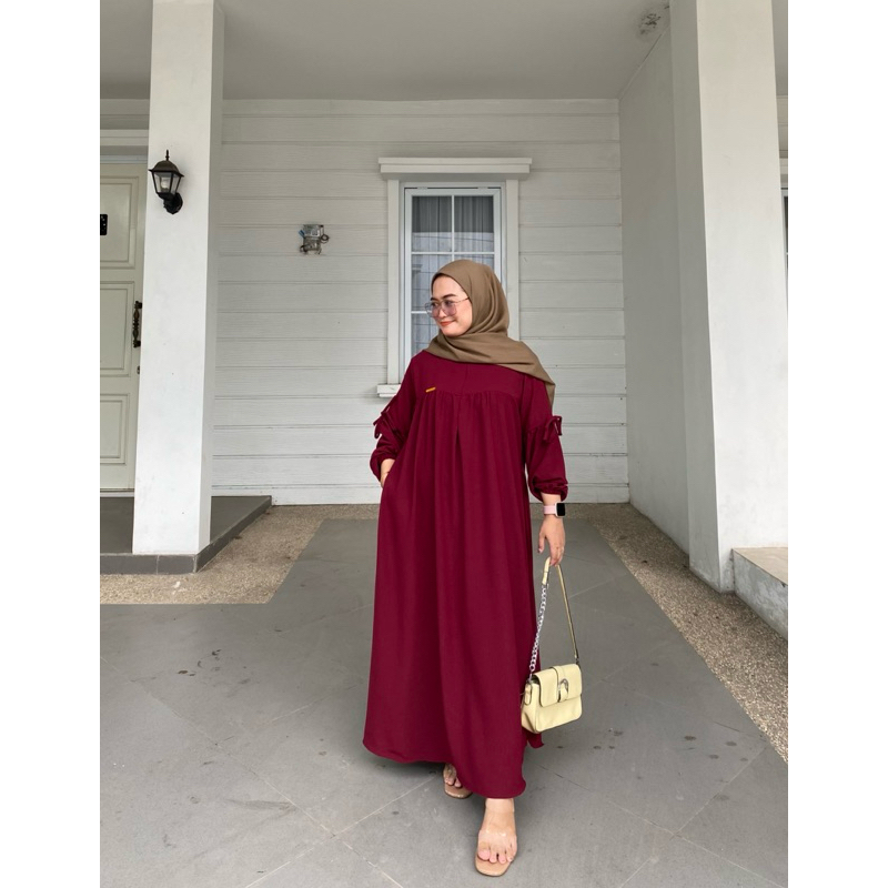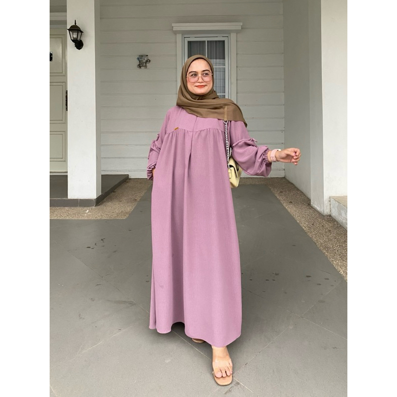 DRESS GAMIS LEBARAN 2222 ADREENA HIJAB - ALIKA DRESS MUSLIMAH CRINCLE AIRFLOW PREMIUM LENGAN TALI BALON MEWAH